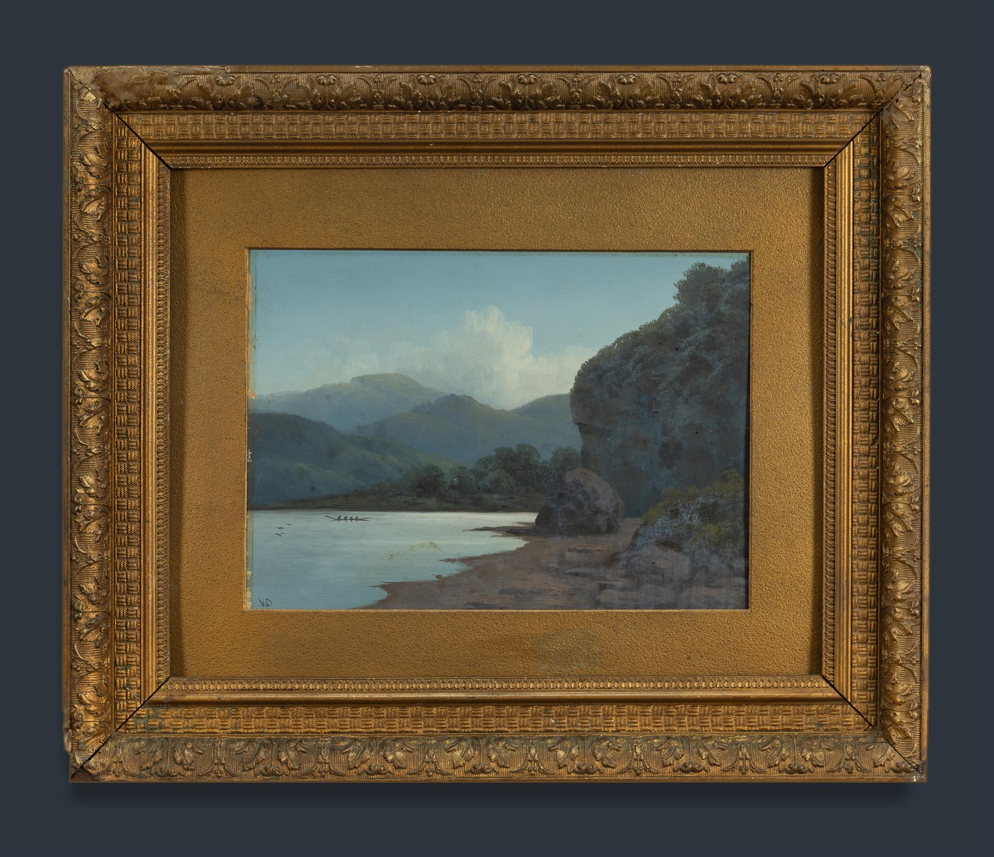 DELAWARR, Valentine (1852-1918) New Zealand Lake Scene with Native Canoe Oil on Board 19x26.5cmEstimate $150-300