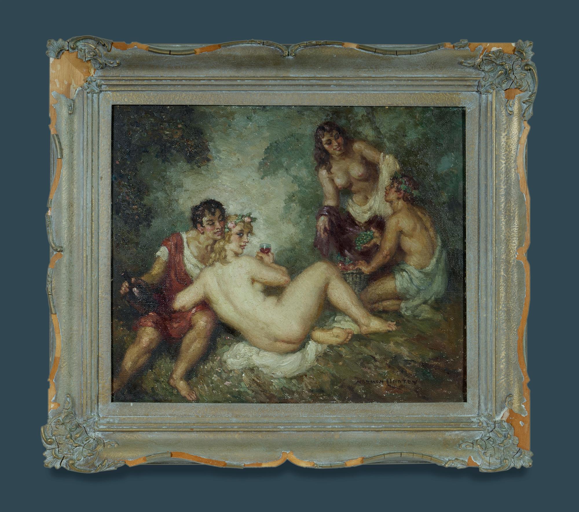 LINDSAY, Norman (1879-1969) Bacchanalian Revellers Signed 'Norman Lindsay' lower right. Oil on Canvas on Board 41x49cm PROVENANCE: Christie's Melbourne 14th March 1972 (lot 41); private collection, NSW.Estimate $16,000-22,000