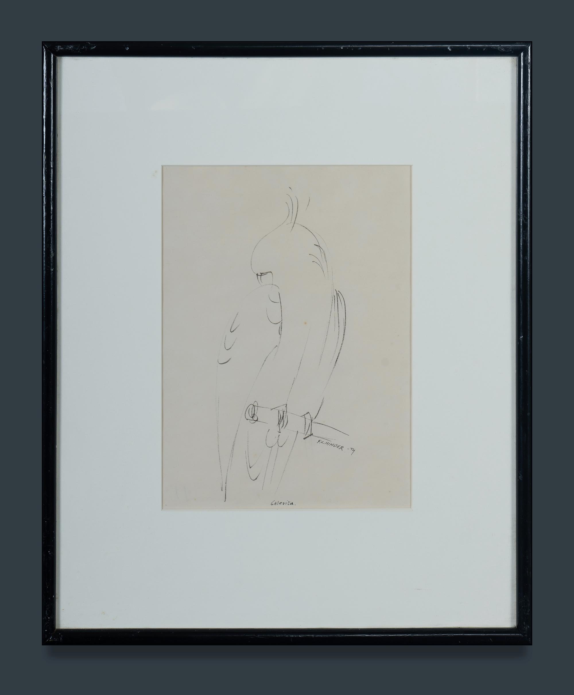 HINDER, F C (Frank) (1906-1992) 'Galerita,' 1974. The Bloomfield Galleries certificate of authenticity verso. Pen & Ink 23x17cm (sight)Estimate $500-800