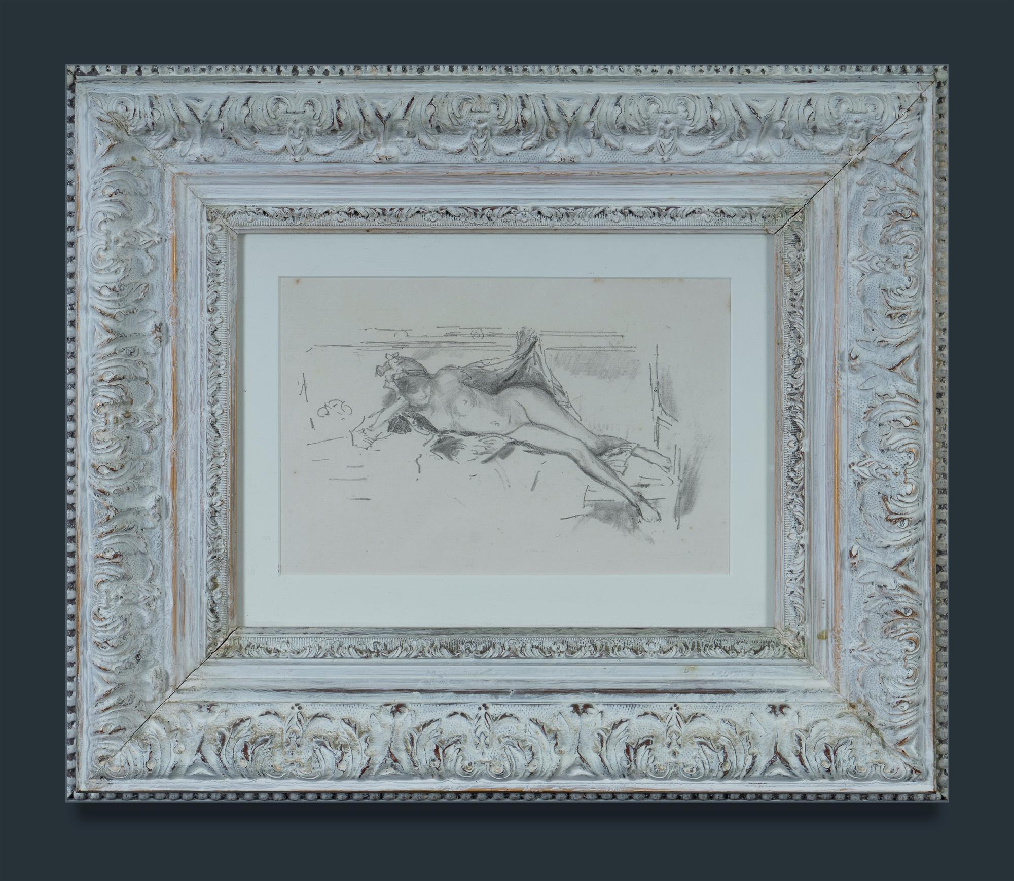 WHISTLER, James Abbott McNeill (USA 1834-1903) Nude Model Reclining (1893) Label verso for DC-ART, Woollahra NSW (stock no. 1331). Lithograph on Laid Paper 17.9x24.7cm (sheet) 15x23cm (sight)Estimate $1,000-2,000
