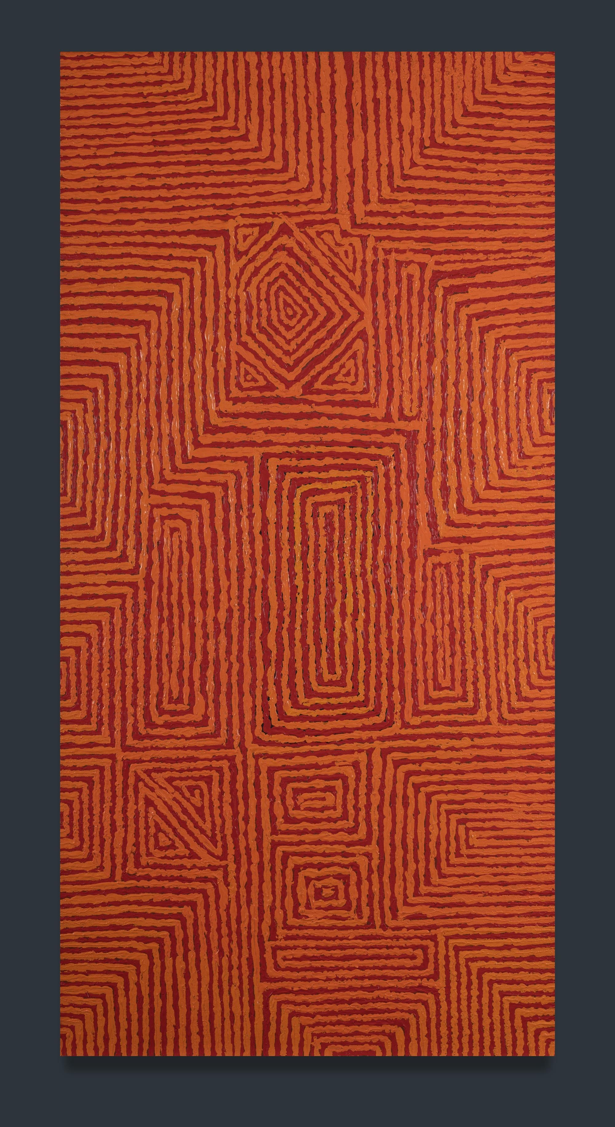 MUDGEDELL, David (Aboriginal) 'Kiwirrkurra,' 2008. Signed verso. Acrylic on Linen 149x74cm PROVENANCE: Warlayirti Artists, cat #1195/08 - certificate of authenticity included.Estimate $500-800