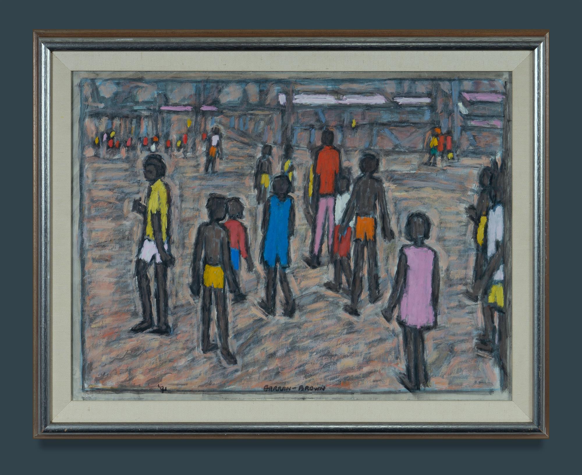 GARRAN-BROWN, Edna (Peg) (1918-2017) Street Scene, Northern Territory, 1991. Oil on Board 44.5x60cmEstimate $250-450