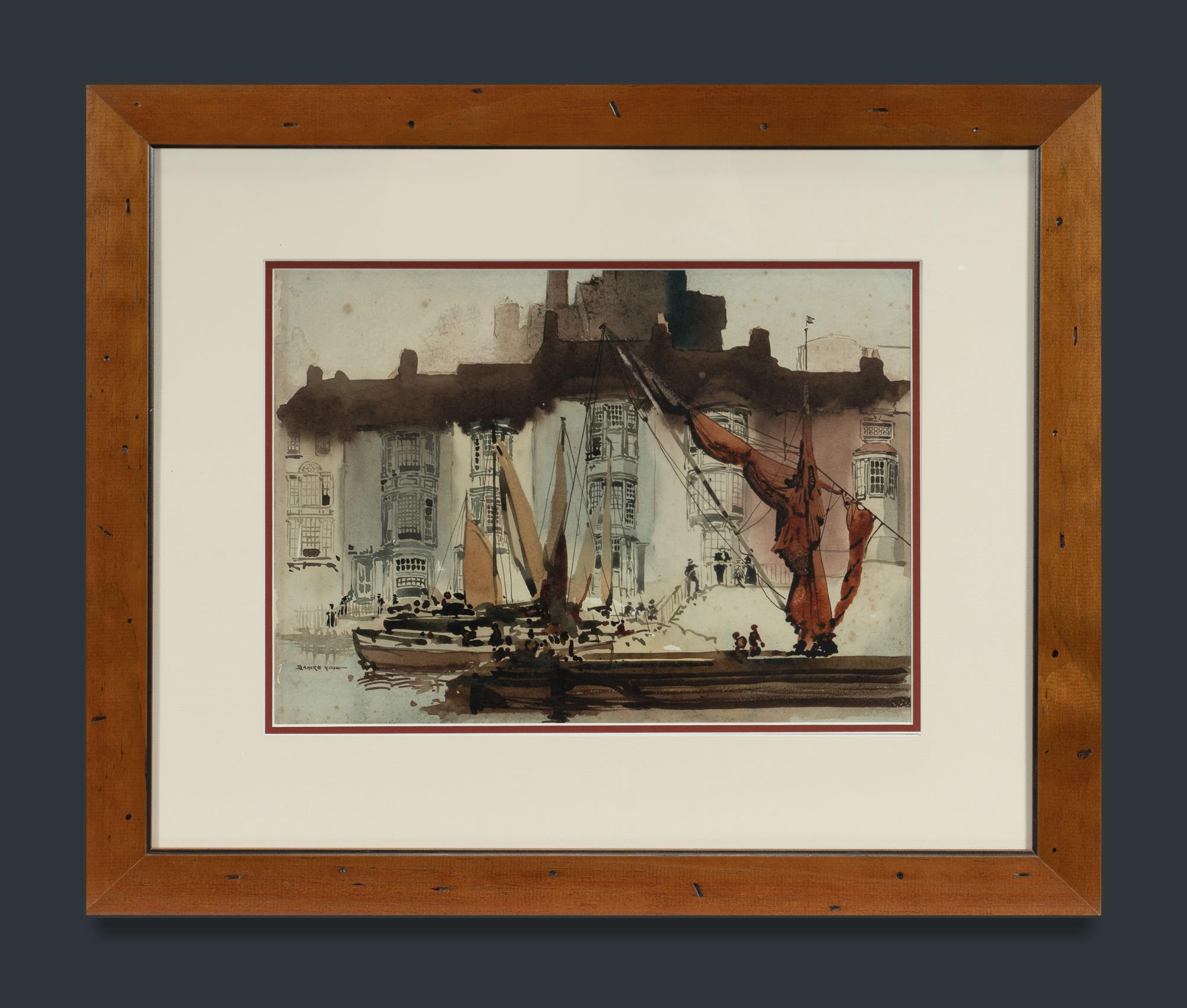 YOUNG, William Blamire (1862-1935) 'Fishing Boats, Weymouth,' 1913-21. Ex. Macquarie Galleries, Sydney (1926). Illustrated: The Watercolours of Blamire Young, Stephen Marshall, Meridian, Sydney, 2013, p.185. W/Clr 26x36cmEstimate $1,500-2,500