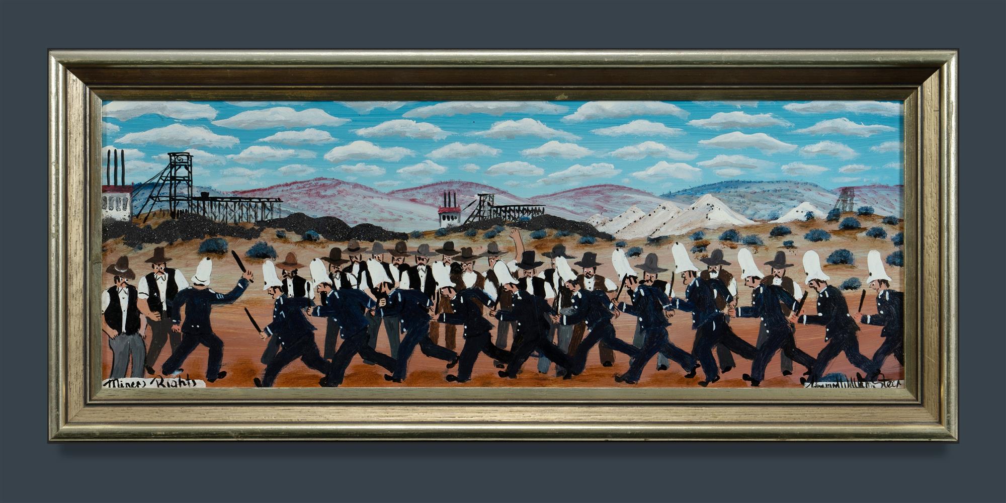 STEER, Howard William (b.1947) 'Miners Rights' Oil & Minerals on Board 21.5x59.5cm PROVENANCE: Private collection, Sydney.Estimate $400-700