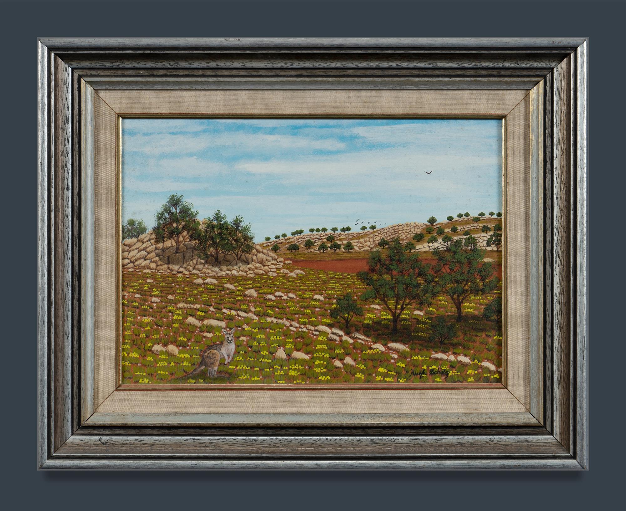 SCHULZ, Hugh (1921-2005) 'After Rain, Broken Hill' Brushmen of the Bush label verso. Acrylic on Board 24x34.5cm PROVENANCE: Private collection, Sydney.Estimate $500-800