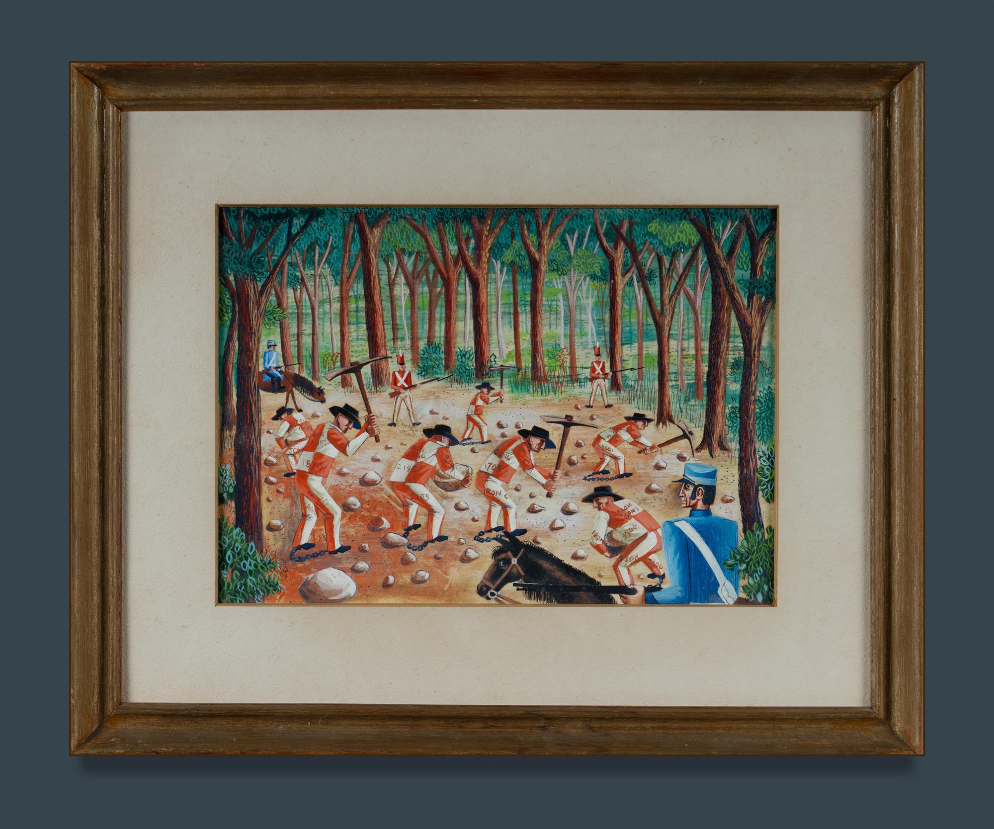 Artist Unknown Iron Gang Under Supervision of Troopers. Gift inscription verso. Gouache 16.5x23cm PROVENANCE: Estate late James F Staples, Sydney.Estimate $100-300
