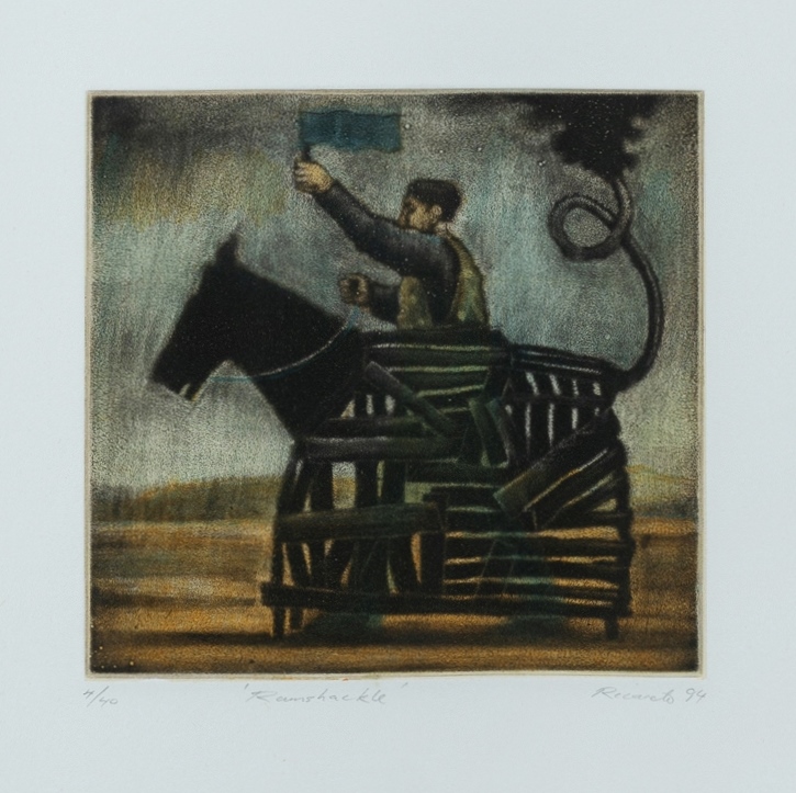 RICARDO, Geoffrey (b.1964) 'Ramshackle,' 1994. Coloured Etching 4/40 17x17.5cm (image) 55.5x38.5cm (sheet)Estimate $150-250