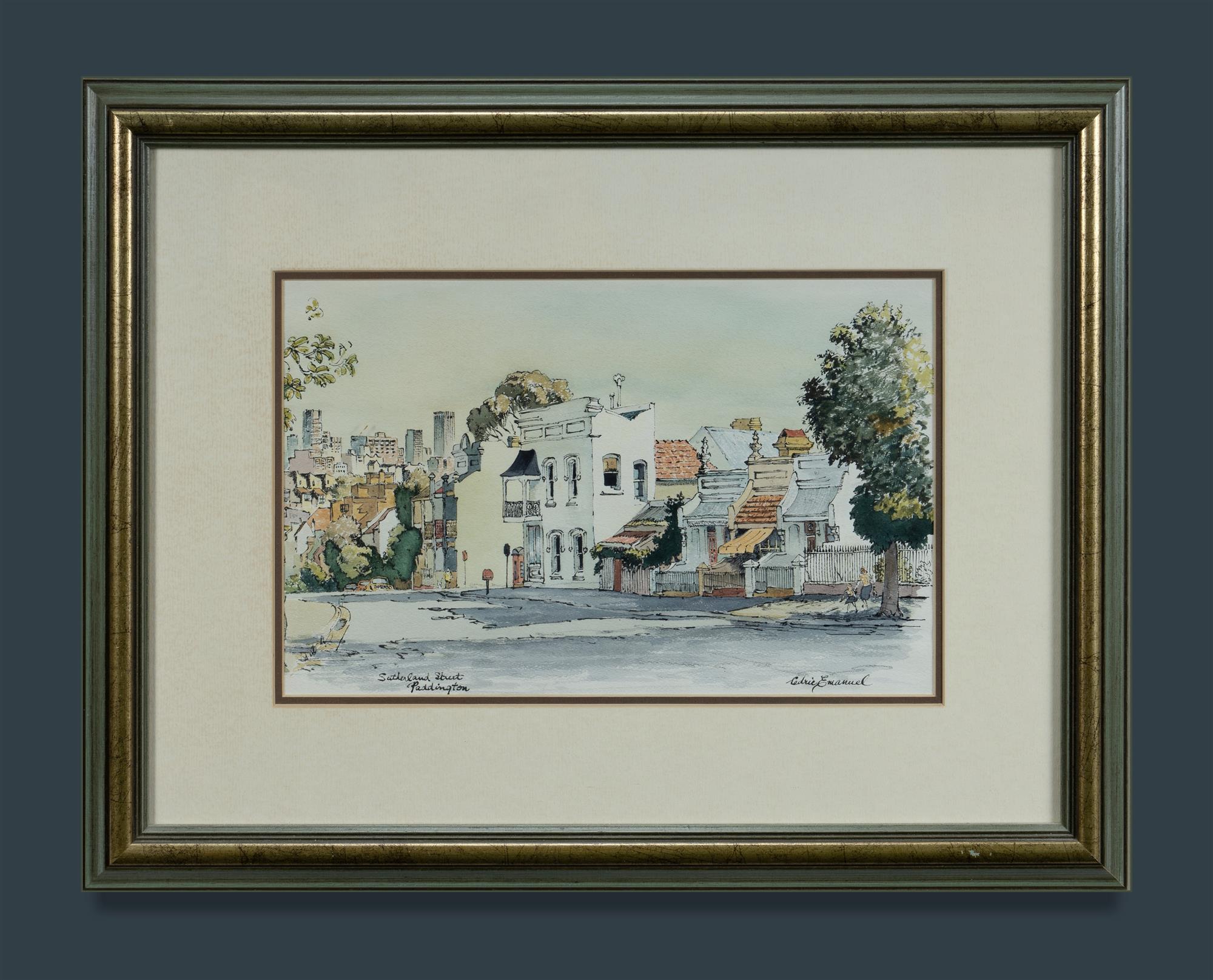 EMANUEL, Cedric (1906-1995) 'Sutherland Street, Paddington [Sydney, NSW]' Promotion card attached verso. W/Clr 22.5x35cmEstimate $200-400