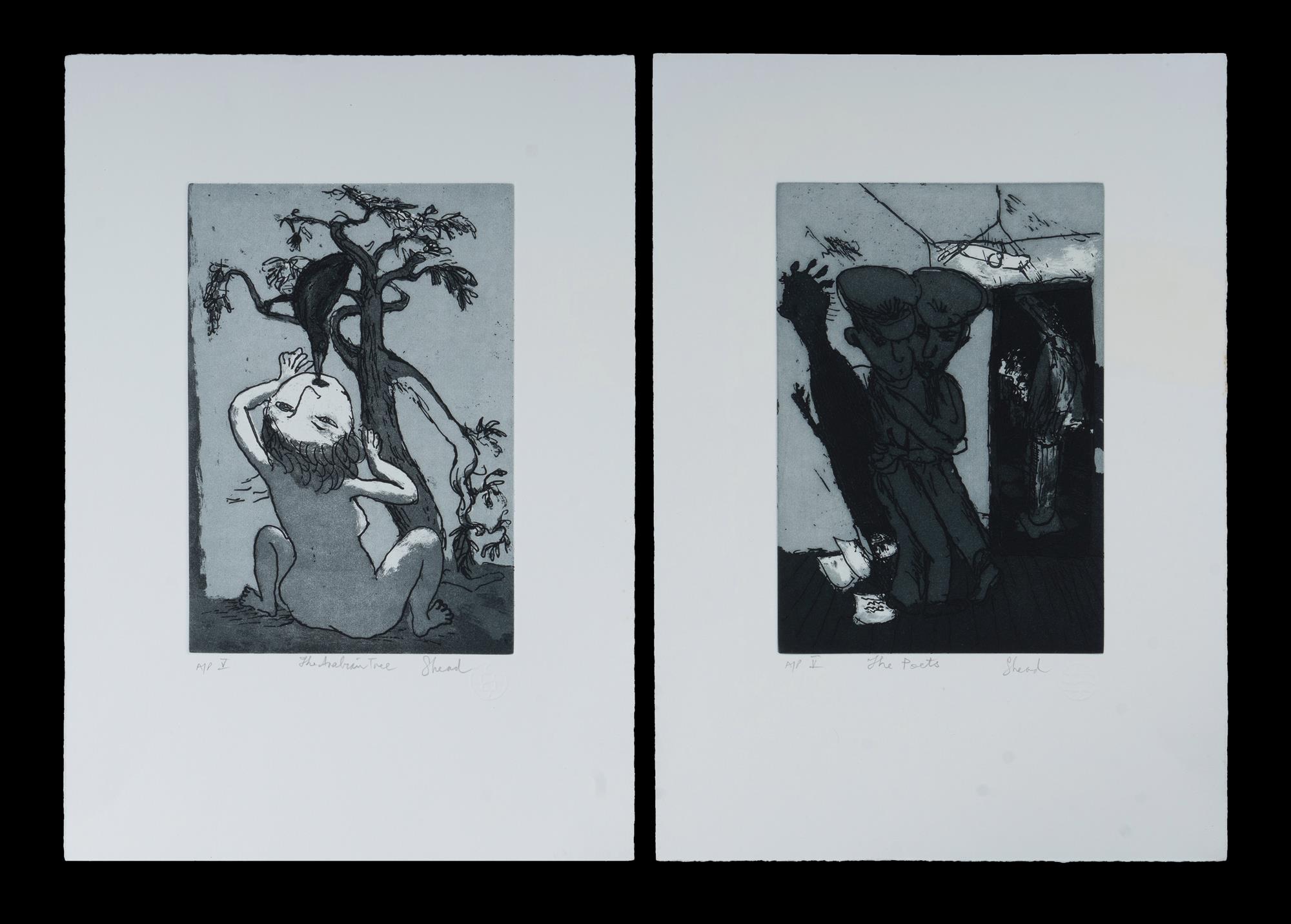 SHEAD, Garry (b.1942) (4) 'The Ern Malley Suite,' 2004. In original presentation folio (artist dedication inside cover) Ex Australian Galleries. Etching with Aquatint (4) A/P V 24.5x17cm each (image)Estimate $500-800