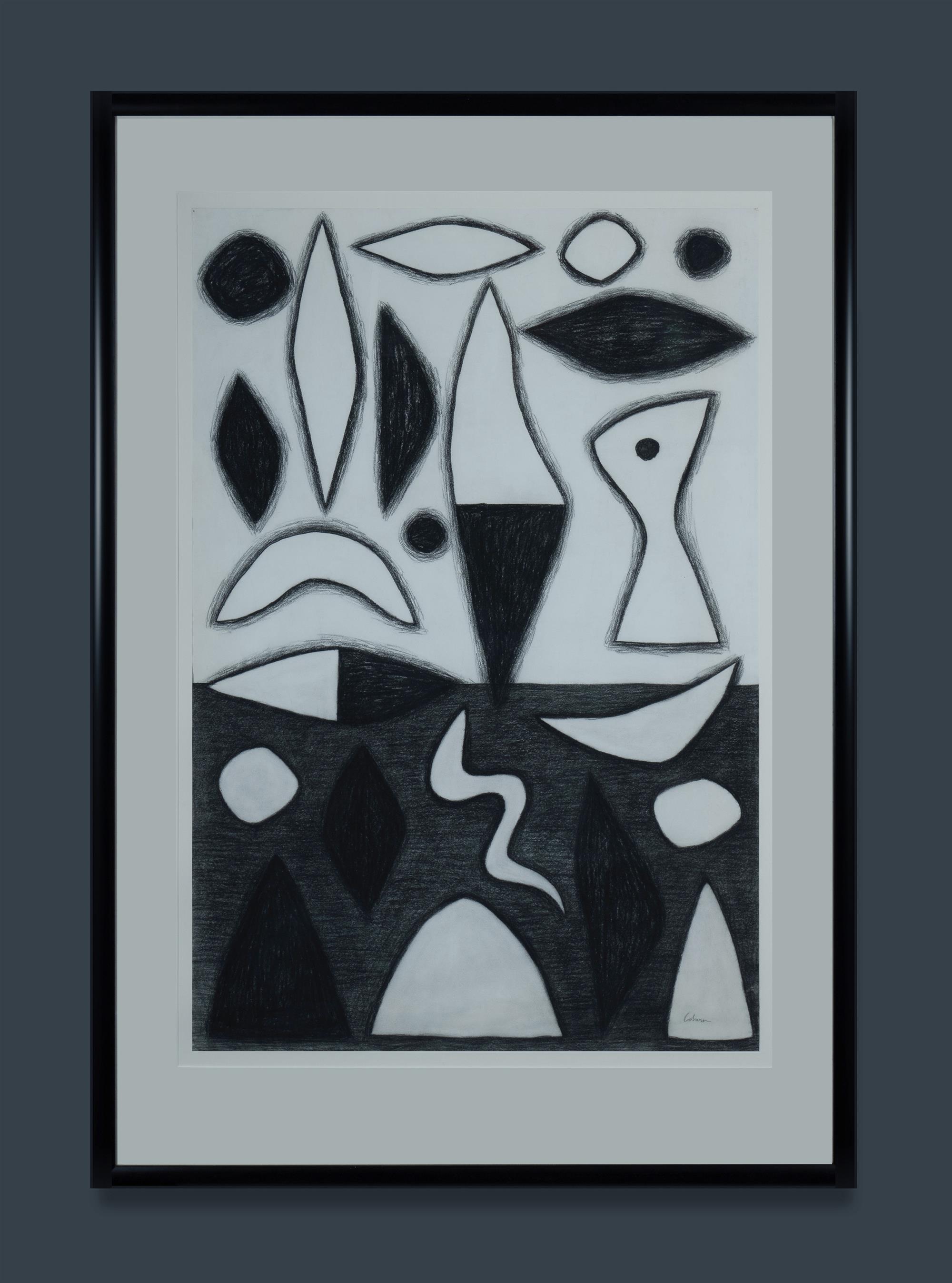 COBURN, John (1925-2006) 'Desert Totems' Signed lower right. Also accompanied by signed certificate of authenticity from the artist's wife Doreen Coburn dated 3/6/2006. Charcoal 117.5x79cm PROVENANCE: Davidson Auctions 27th May 2006 (lot 205); private collection, Sydney.Estimate $5,000-7,000