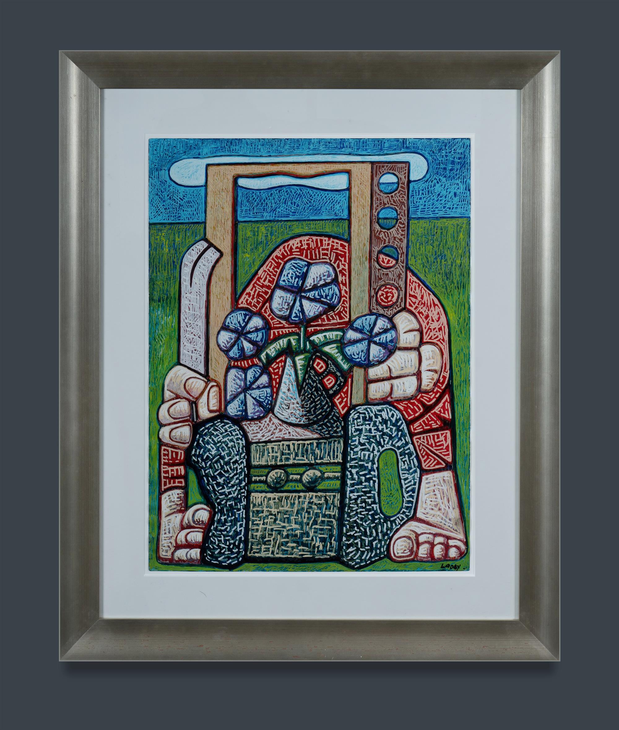 LOOBY, Keith (b.1940) 'Towards Something Artistic,' 1989-90. Ex Ray Hughes Gallery - label from previous frame attached: '44 Towards Something Artistic, 1989-90, Chapter III'. Oil Pastel on Paper 62x46cmEstimate $500-800