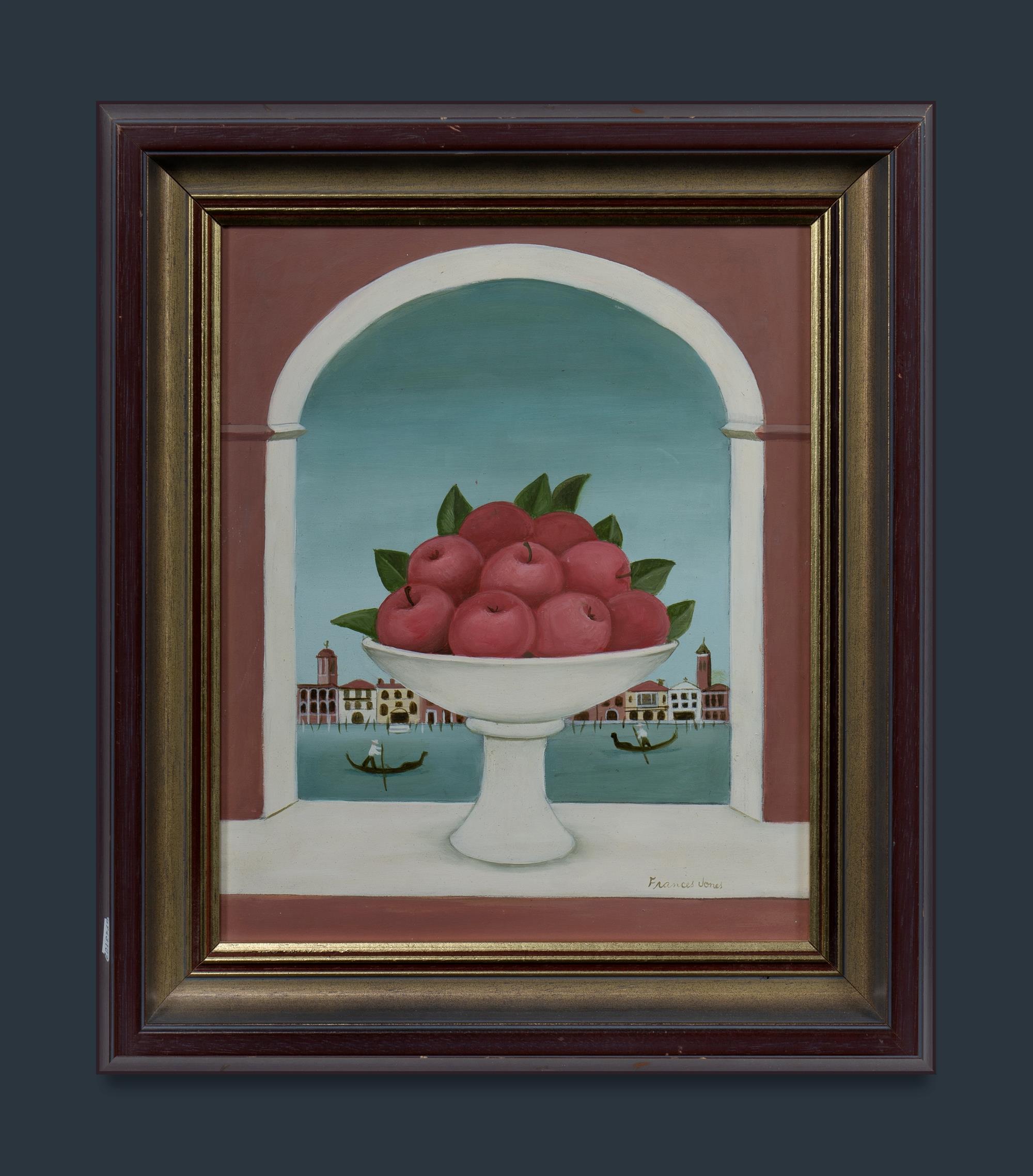 JONES, Frances (1923-1999) 'Venetian Window' Signed lower right. Ex Beaver Galleries, Canberra (label verso) Oil on Board 29x24cmEstimate $200-400