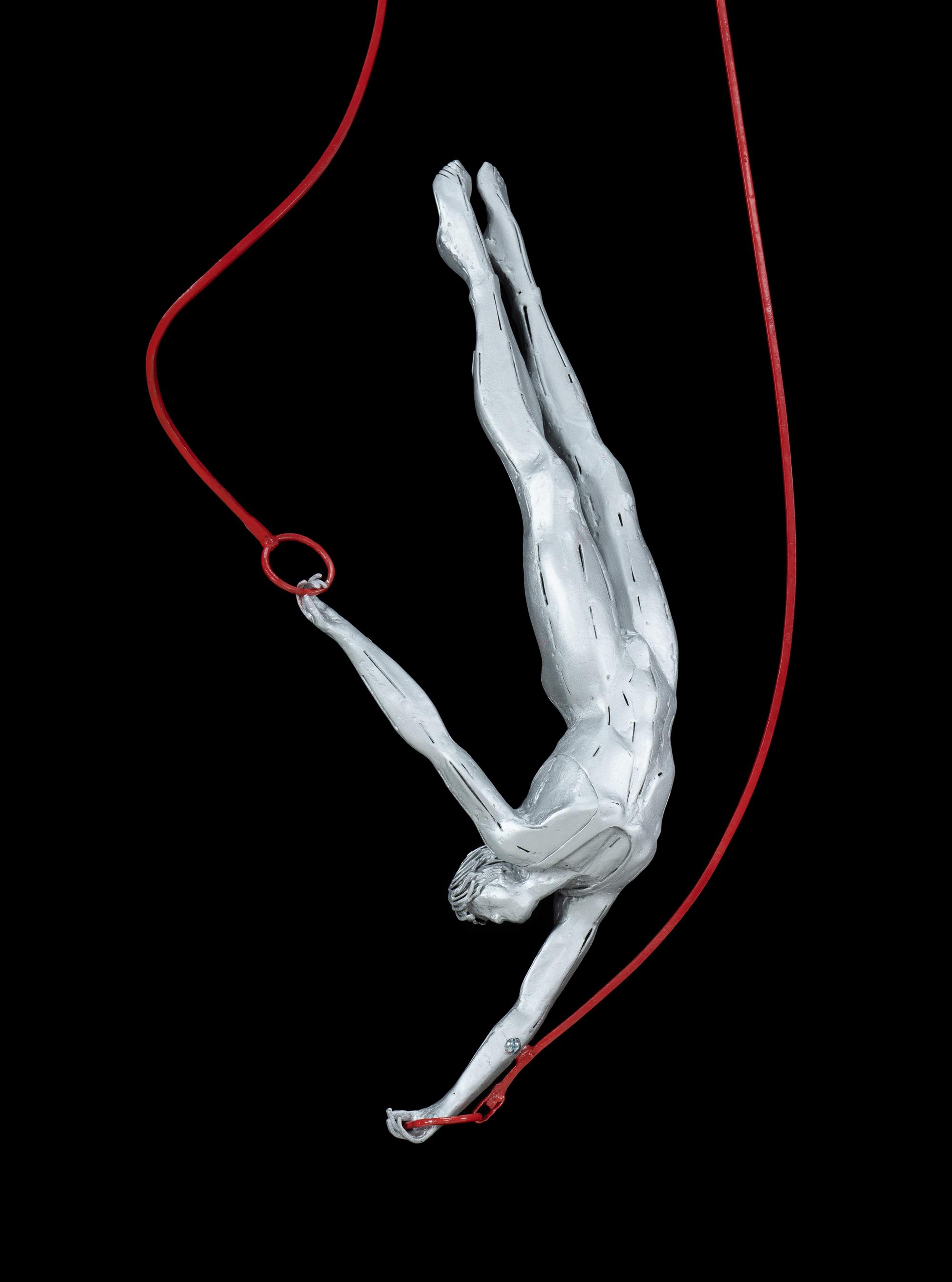 SEFFRIN, Nickolaus (b.1931) Gymnast on Rings, c.2000. Painted Metal Sculpture H184cm (to be suspended from ceiling)Estimate $1,500-2,500
