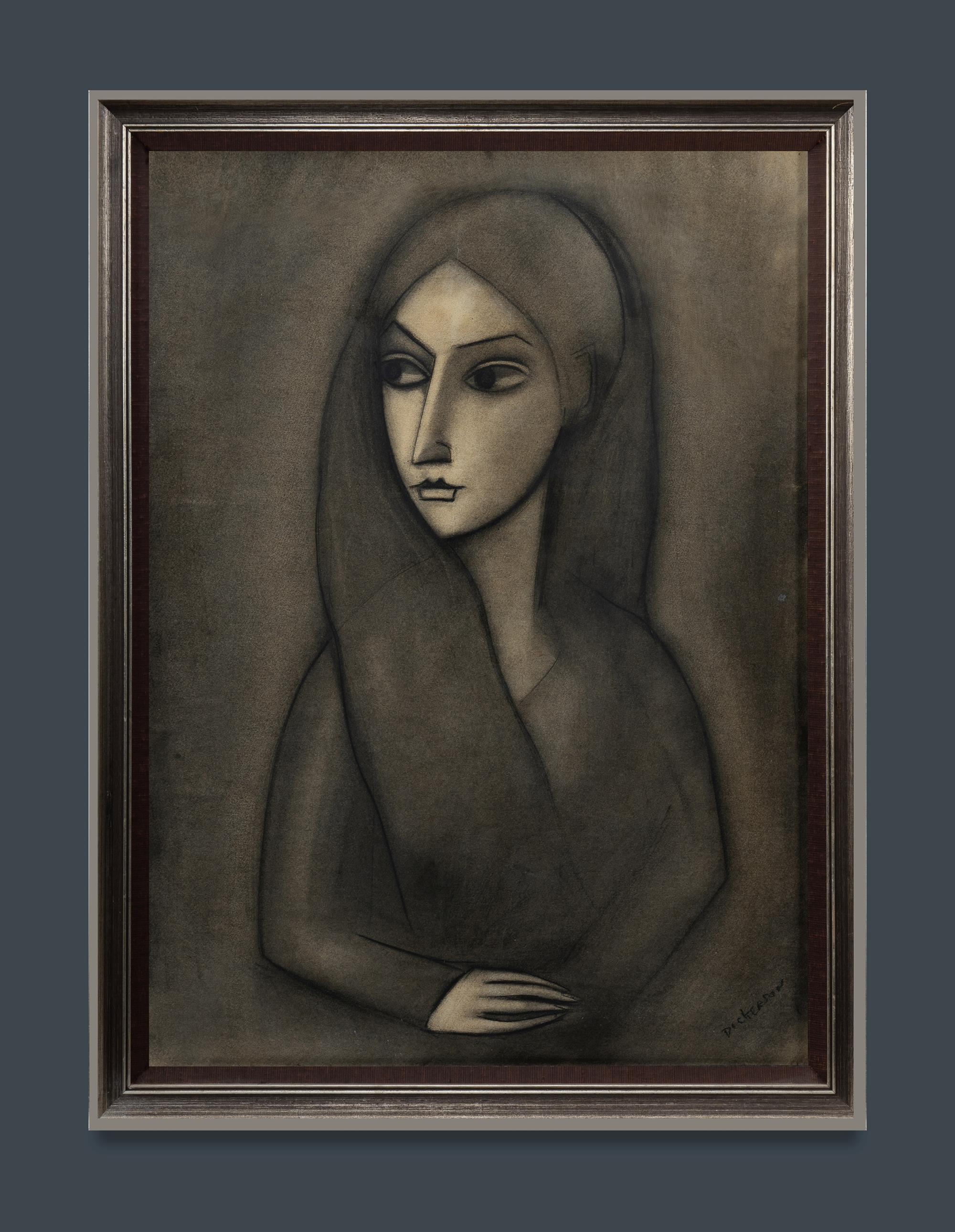 DICKERSON, Robert (1924-2015) Woman in 3/4 Profile with Red Scarf Charcoal 77x55.5cmEstimate $4,000-6,000
