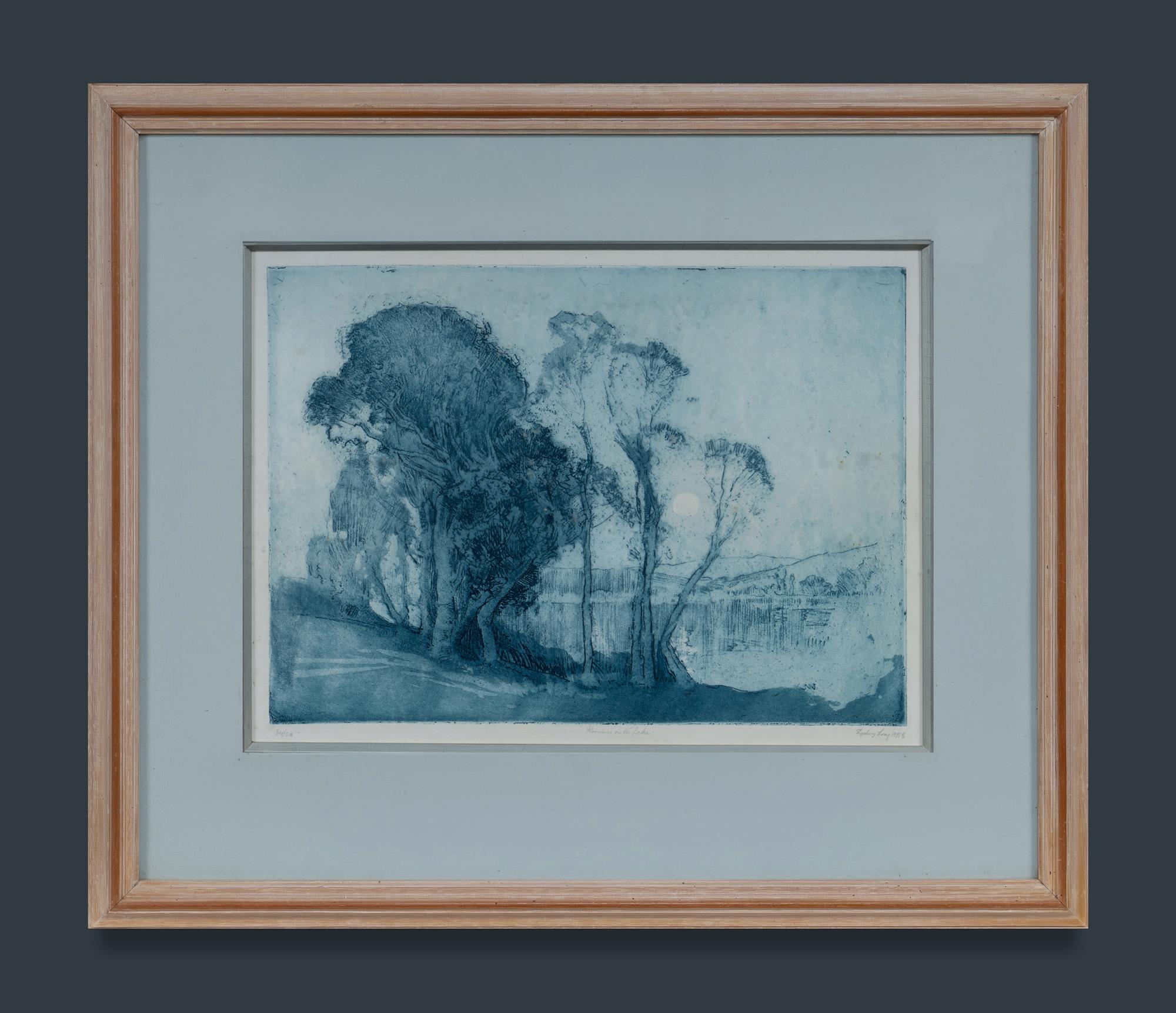 LONG, Sydney (1871-1955) 'Moonrise on the Lake' Label verso for Artarmon Galleries, Sydney (stock no.17555) Aquatint (Blue) 34/60 26x36.5cm (image)Estimate $800-1,500