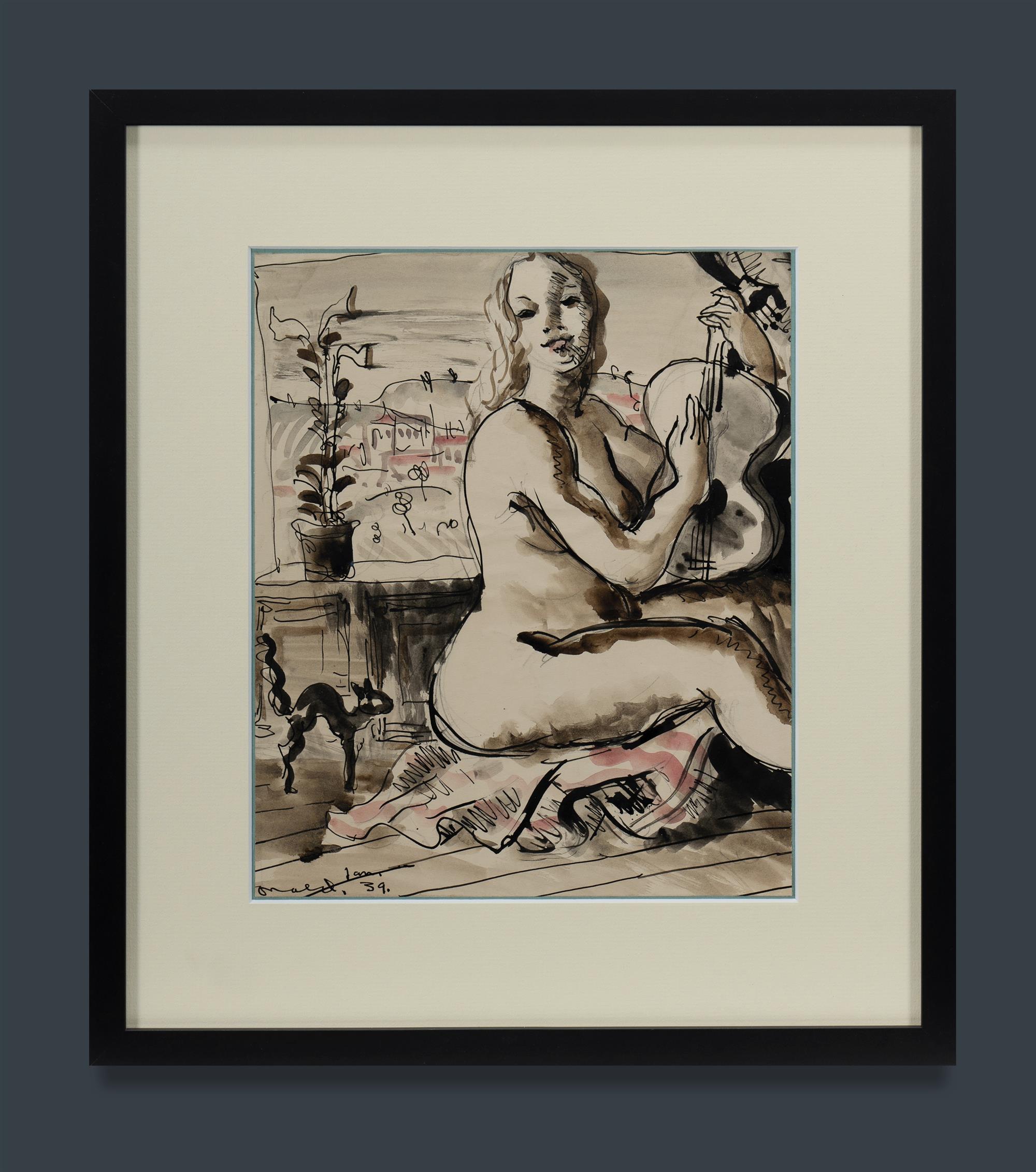 FRIEND, Donald (1915-1989) Nude Playing a Guitar, 1939. Ink & W/Clr 32x26.5cmEstimate $1,500-2,500