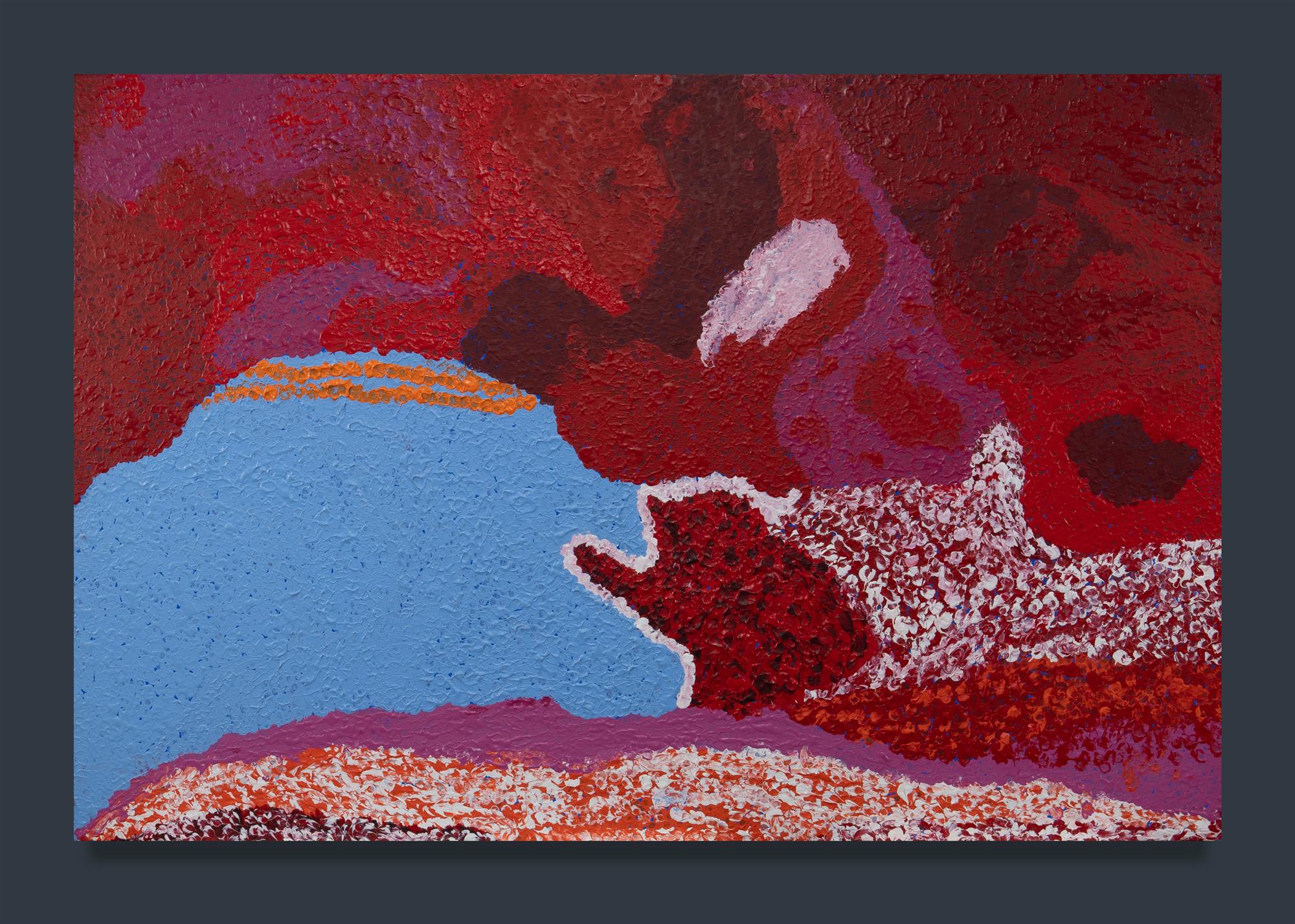 WATSON, Tommy (Aboriginal c.1935-2017) 'Iyarka Waterhole,' 2012. Inscribed verso. Acrylic on Linen 150x100cm PROVENANCE: Agathon Galleries, cat #AGTW0103121930; Shapiro Auctioneers, 10th Nov 2015 (lot 262)Estimate $12,000-18,000