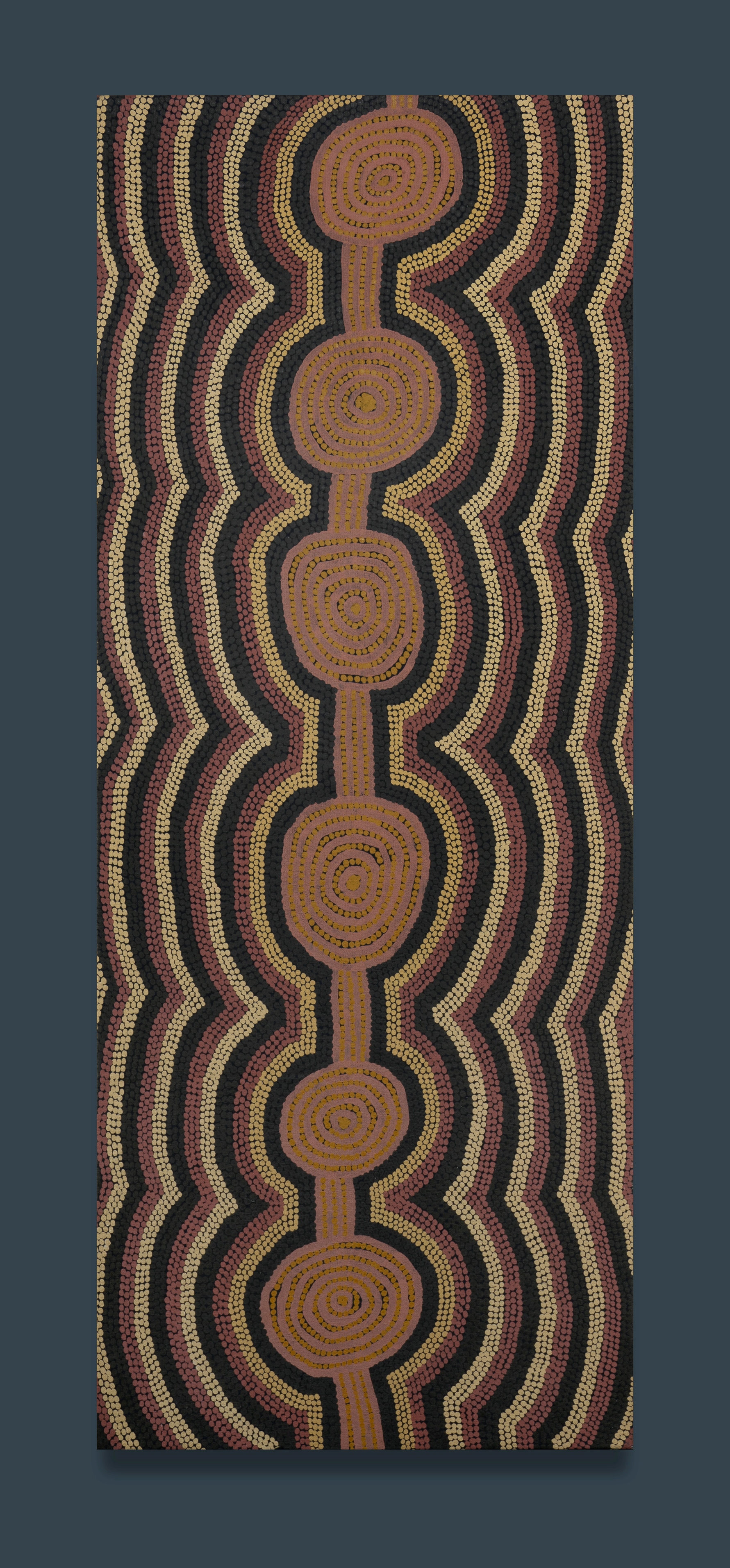 TJAPANGATI, Charlie (Aboriginal born c.1949) Untitled Inscribed verso 'Charlie Tjapangati CT870475'. Acrylic on Linen 150x60cm PROVENANCE: Papunya Tula Artists, Alice Springs (cat #CT870475); Annandale Galleries, Sydney; private collection.Estimate $1,000-2,000