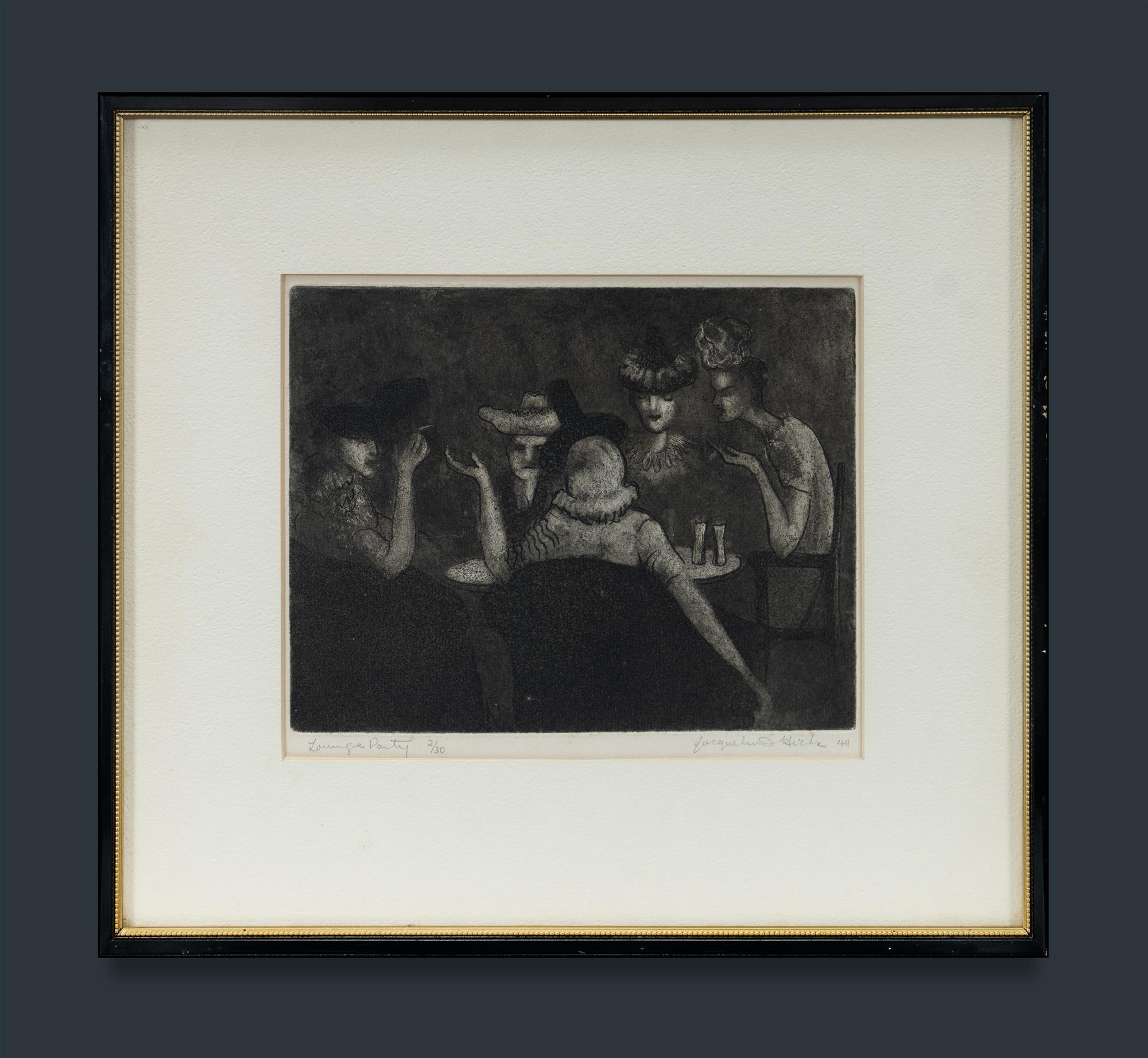 HICK, Jacqueline (1914-2004) 'Lounge Party,' 1944. Aquatint Etching 2/30 17x21.5cmEstimate $400-700