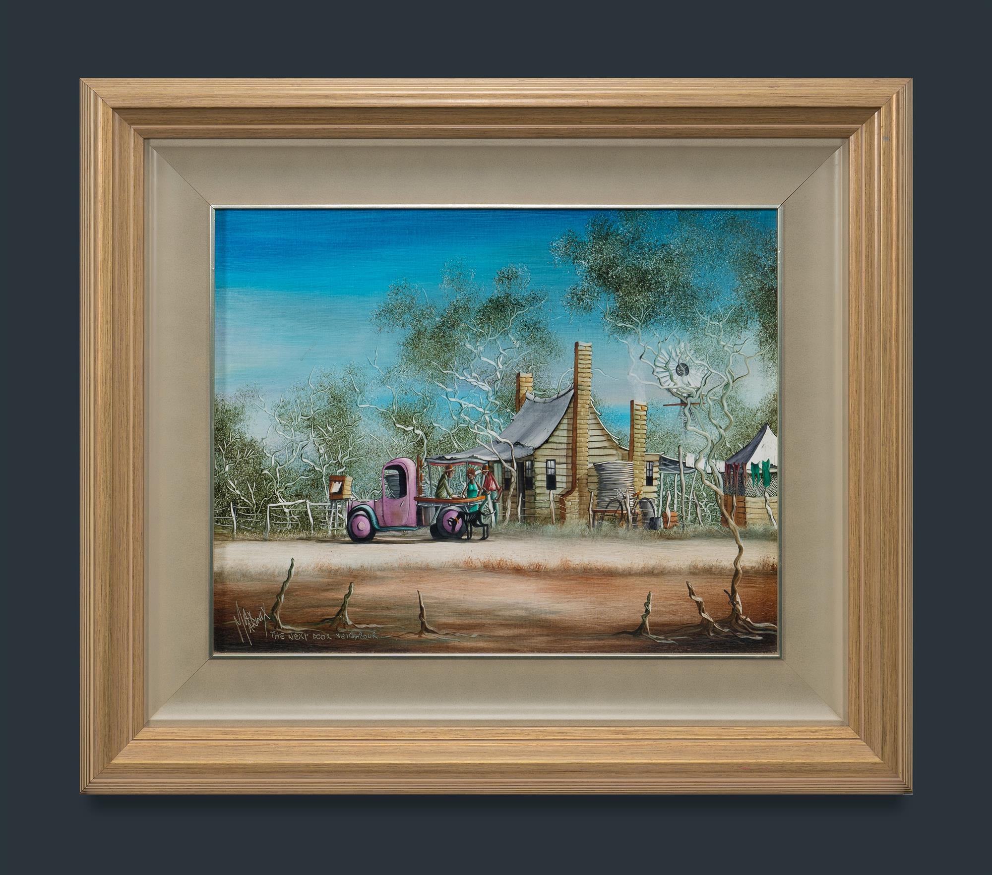 MANNIX, Max (b.1939) 'The Next Door Neighbour' Oil on Board 39.5x49.5cmEstimate $1,200-1,600