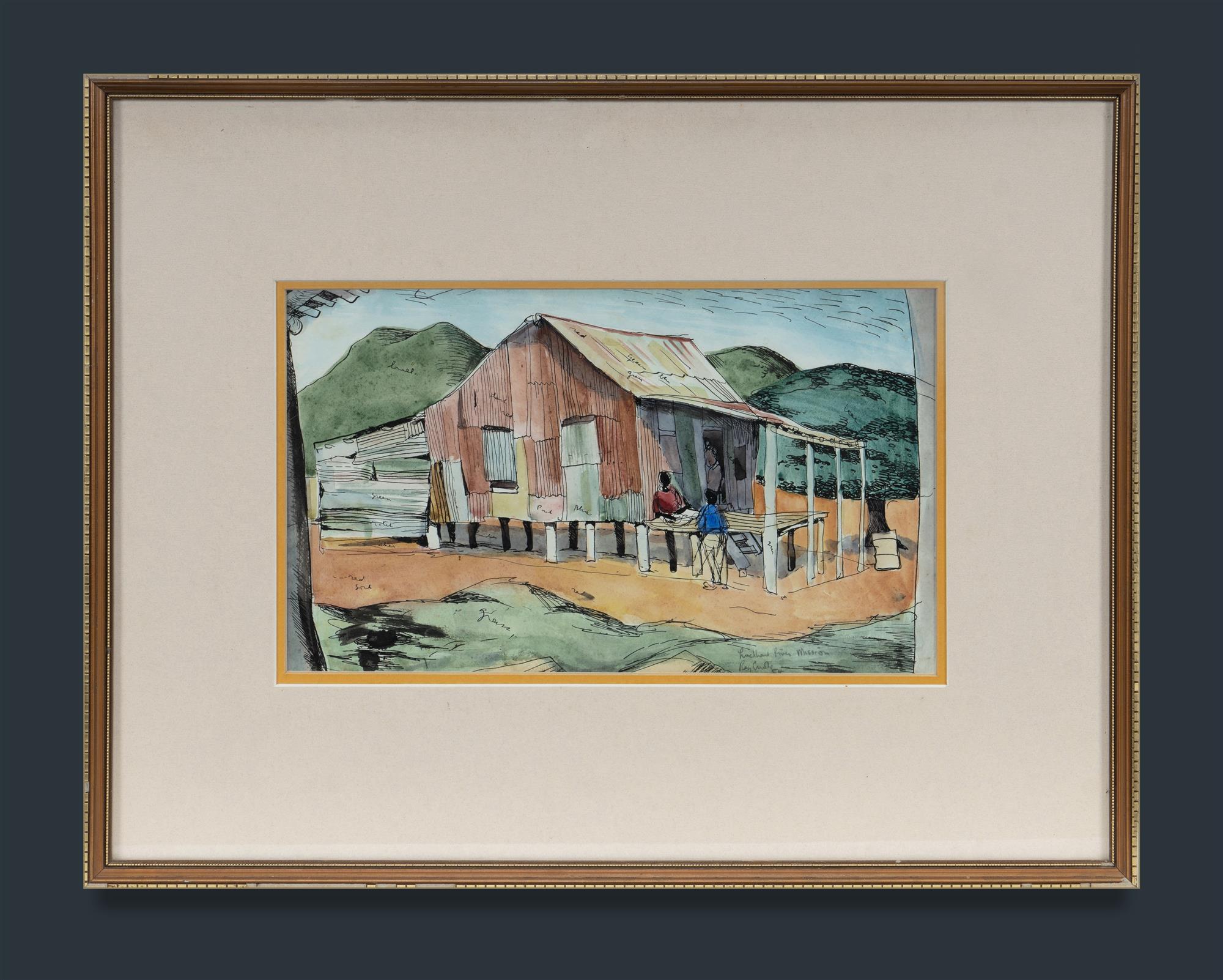 CROOKE, Ray (1922-2015) 'Lockhart River Mission,' 1954. Study for a related work. Signed and inscribed in pencil lower right. Ink & W/Clr 19.5x33cm PROVENANCE: Deceased Estate, QLD.Estimate $1,000-2,000
