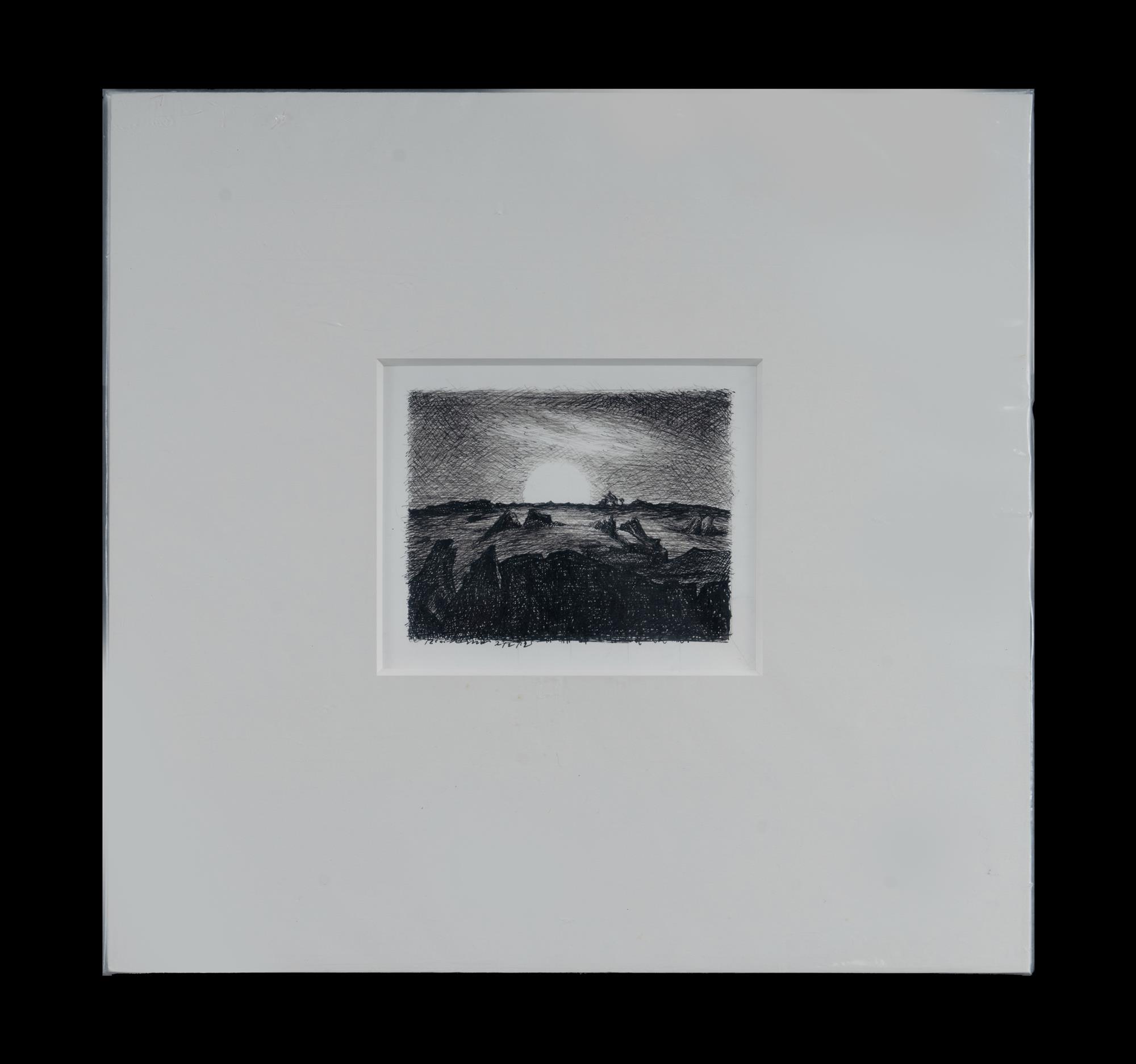 AMOR, Rick (b.1948) 'Moonrise, Walls of China, S-W N.S.W,' 2012. Signed and dated 2/2/12 lower left. Pen & Ink 9x11.5cmEstimate $600-900