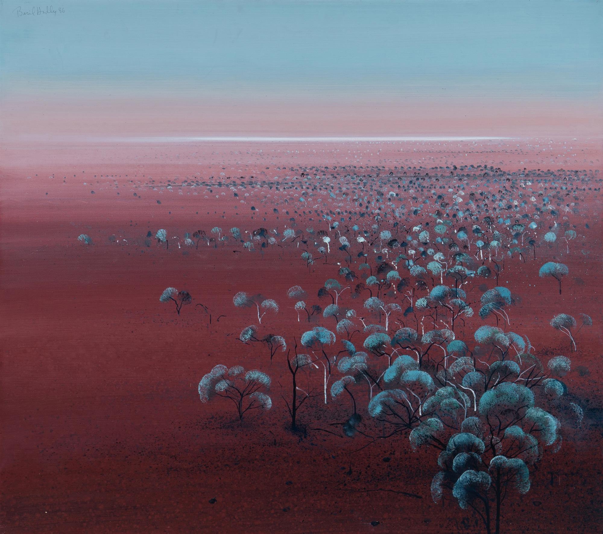 HADLEY, Basil (1940-2006) 'Looking North to Amadeus' 1986. Signed upper left and dated 86; signed and inscribed with title verso. Oil on Canvas (Diptych) 81x91cm (each panel)Estimate $700-1,200