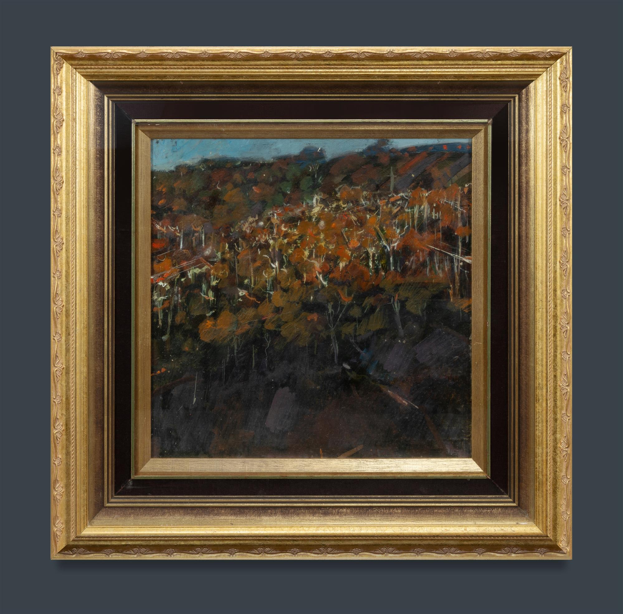 WOODWARD, Margaret (b.1938) 'Slant of Light on Summer Afternoons' Titled verso, with additional signature. Oil on Board 41x41cmEstimate $500-800
