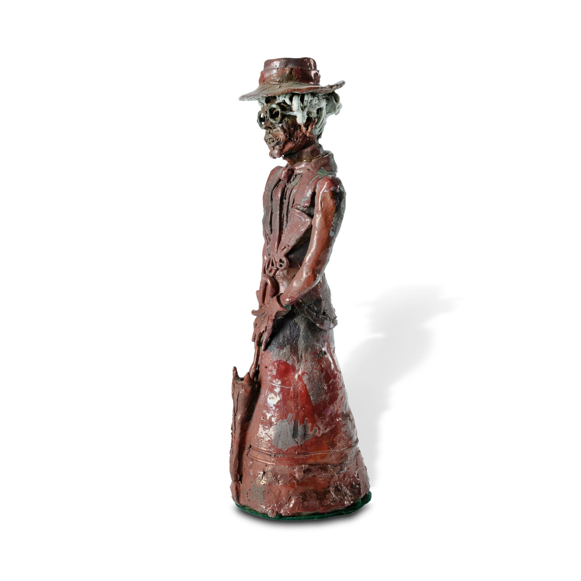 IRVINE, Greg (b.1947) Lady with Umbrella. Initialled to back. Terracotta Sculpture (H35cm)Estimate $120-250