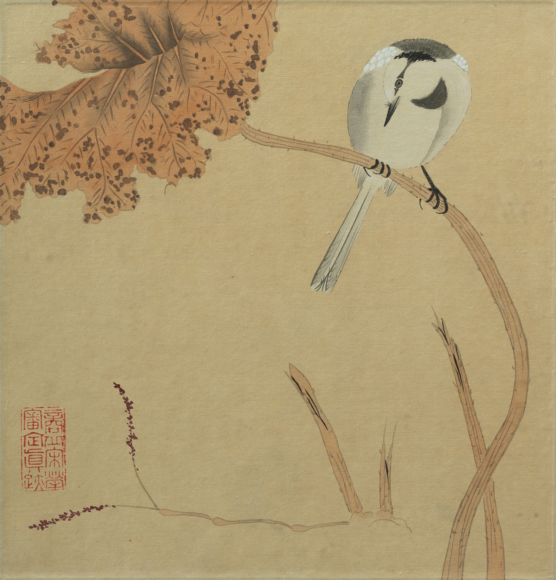 Chinese/Japanese School, (2) After Ma YUAN, 'Moon Over Rooftop', silk embroidery & colour (22x25cm oval); and Artist Unknown, Wagtail on Lotus Plant, ink & wash with white highlights (27.5x26cm) Both works with seals. PROVENANCE: Estate Late Prue Socha, Sydney.Estimate $200-350