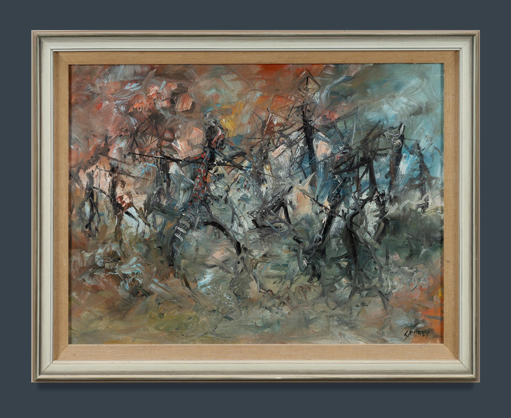 SAWREY, Hugh (1919-1999) 'Corroboree of the Lizard (Arnhem Land)' Oil on Masonite 45x60cmEstimate $3,500-5,500