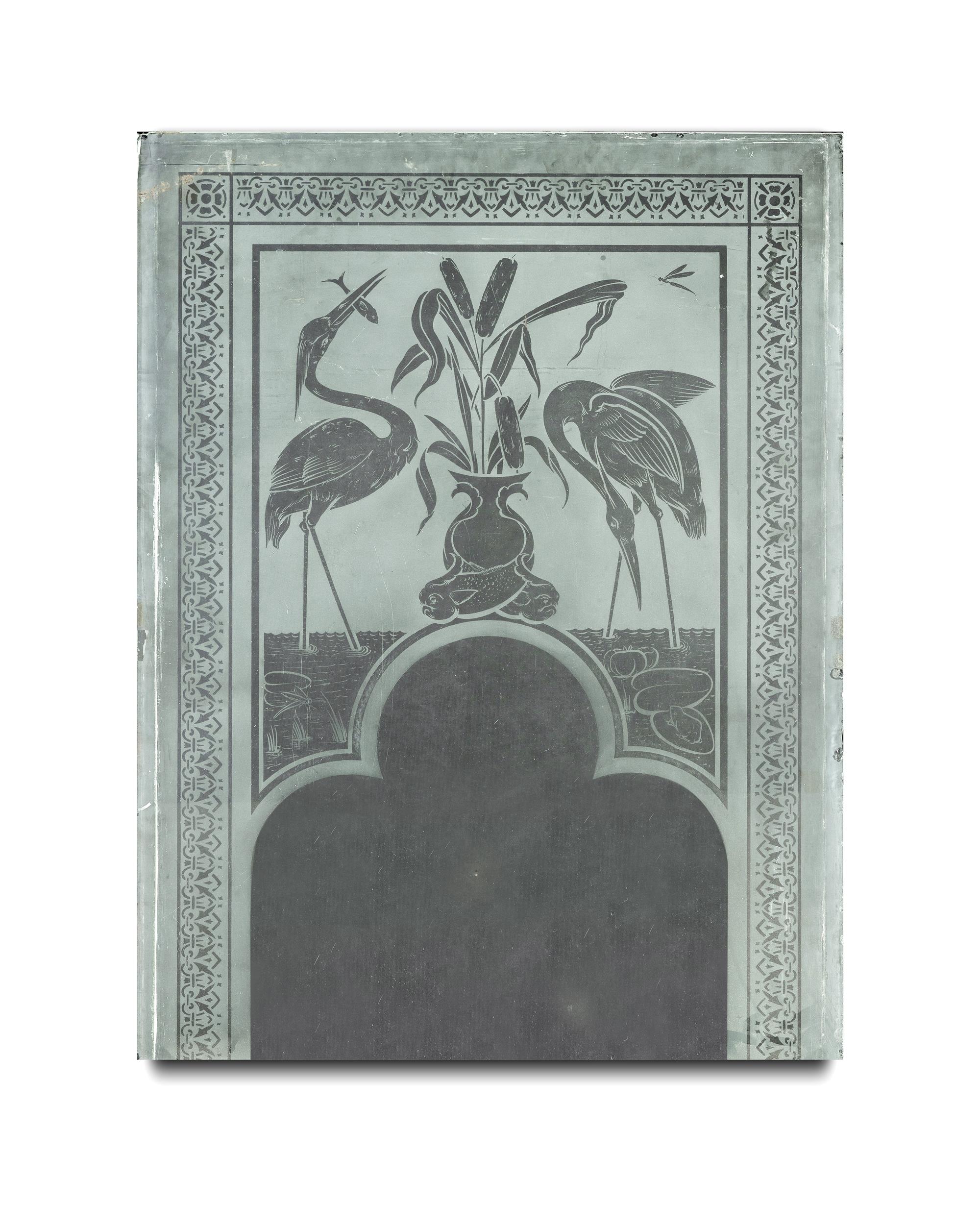 Victorian Aesthetic Movement Etched Glass Window Panel. Circa 1880. (93.5x68cm)Estimate $100-300