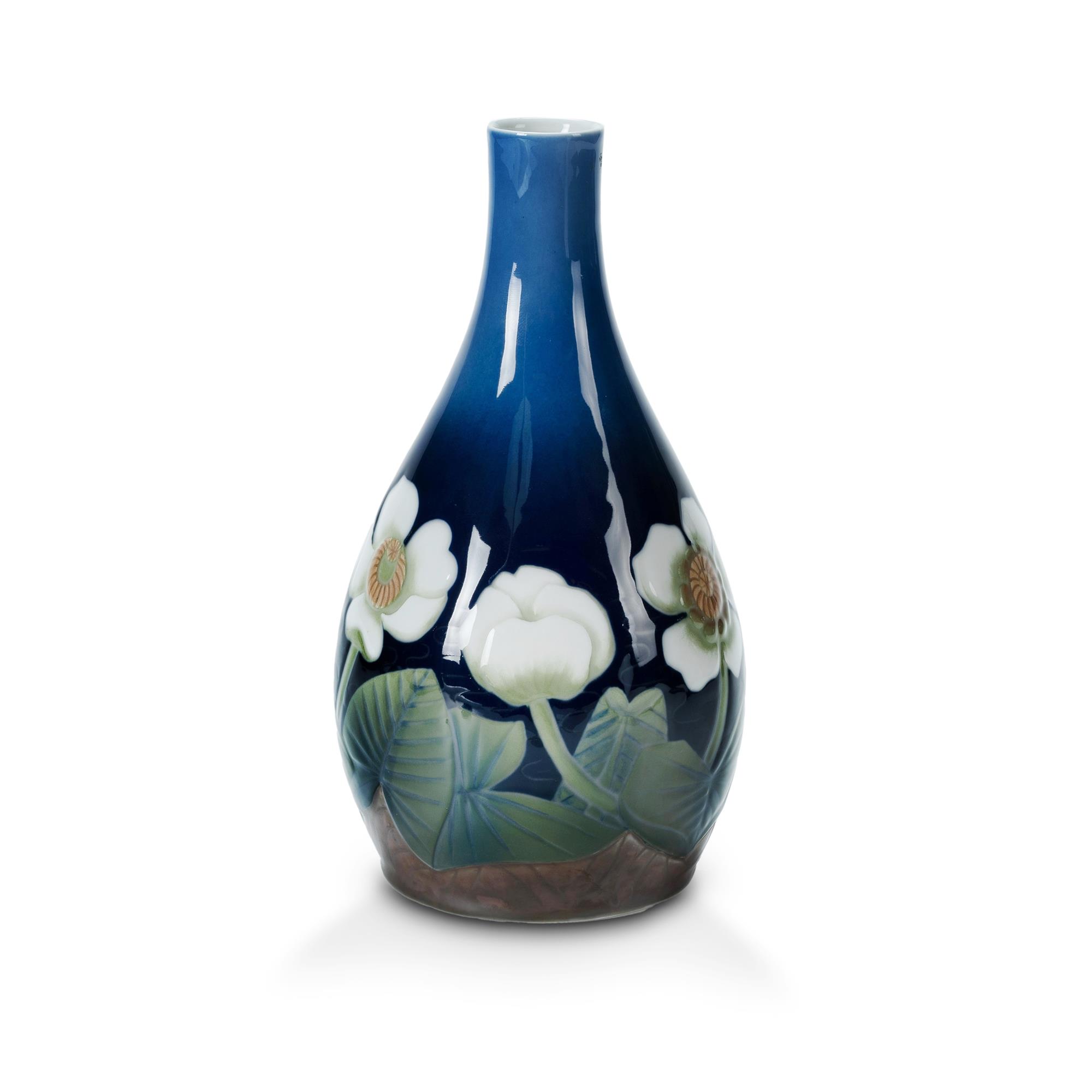 Bing and Grondahl Art Nouveau Porcelain Vase. Carved and moulded with lotus in relief c.1898. (H25cm)Estimate $100-300
