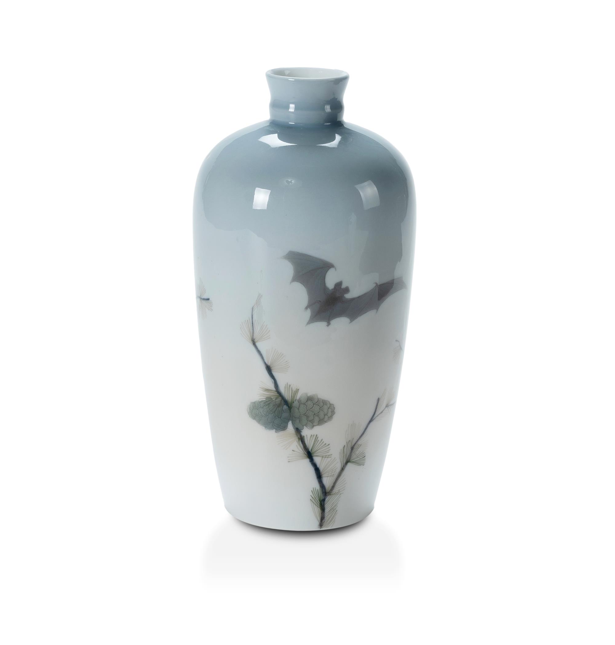Early Royal Copenhagen Art Nouveau Porcelain Vase. Decorated with bats and pine trees. (H25.5cm)Estimate $100-300