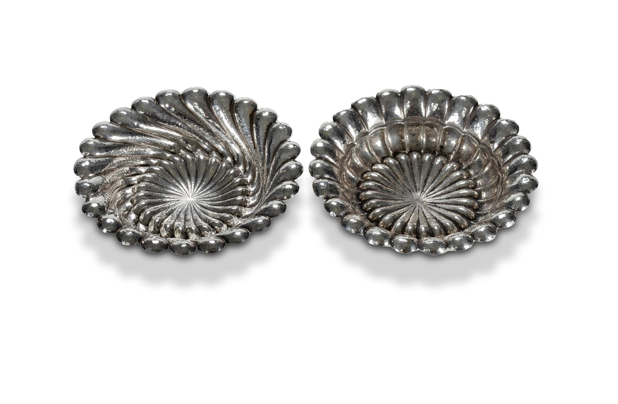 Pr Austrian Secessionist Hand Wrought Silver Bowls. With martele finish and ball feet. Unmarked. Dia.18.5cm W400g (total)Estimate $200-600