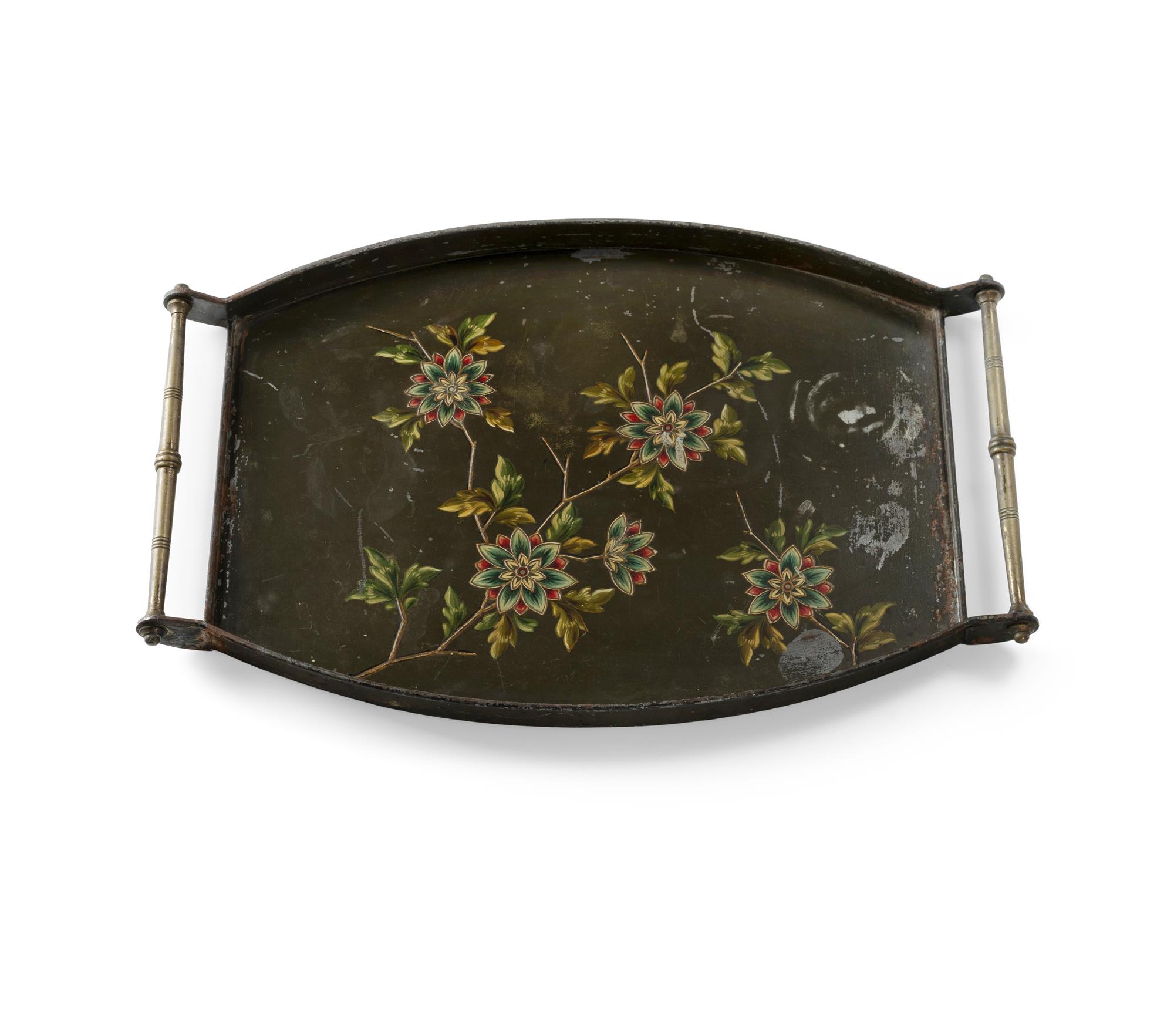 Attrib. Christopher Dresser, 'The Boudoir' Rd. 89612, Painted Tin and Brass Handled Tray c.1884. Probably manufactured by Perry & Co. Wolverhampton. (L53cm)Estimate $50-100