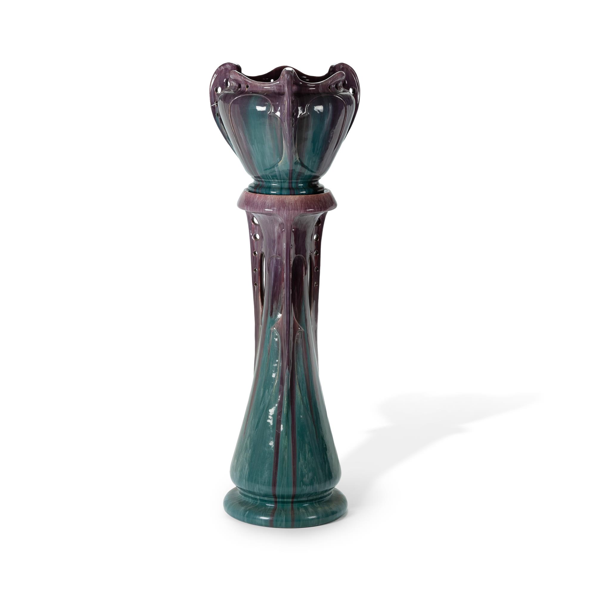 French Art Nouveau Majolica Glaze Jardiniere and Stand. Probably Massier Vallauris (stamped mark indistinct), early 20th C. (H131cm)