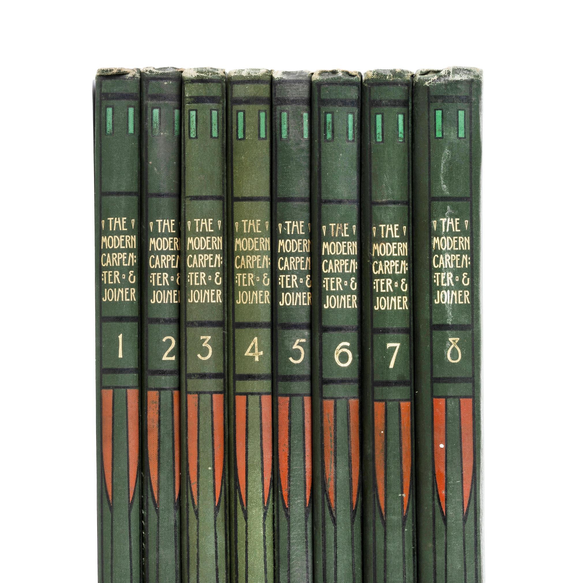 Glasgow School Style Bookbindings. By Talwin Morris (1865-1911) for Gresham Publishing Co. 'The Modern Carpenter and Joiner and Cabinet Maker', London 1903/4, 8 vols. (34.5x26cm)Estimate $50-100