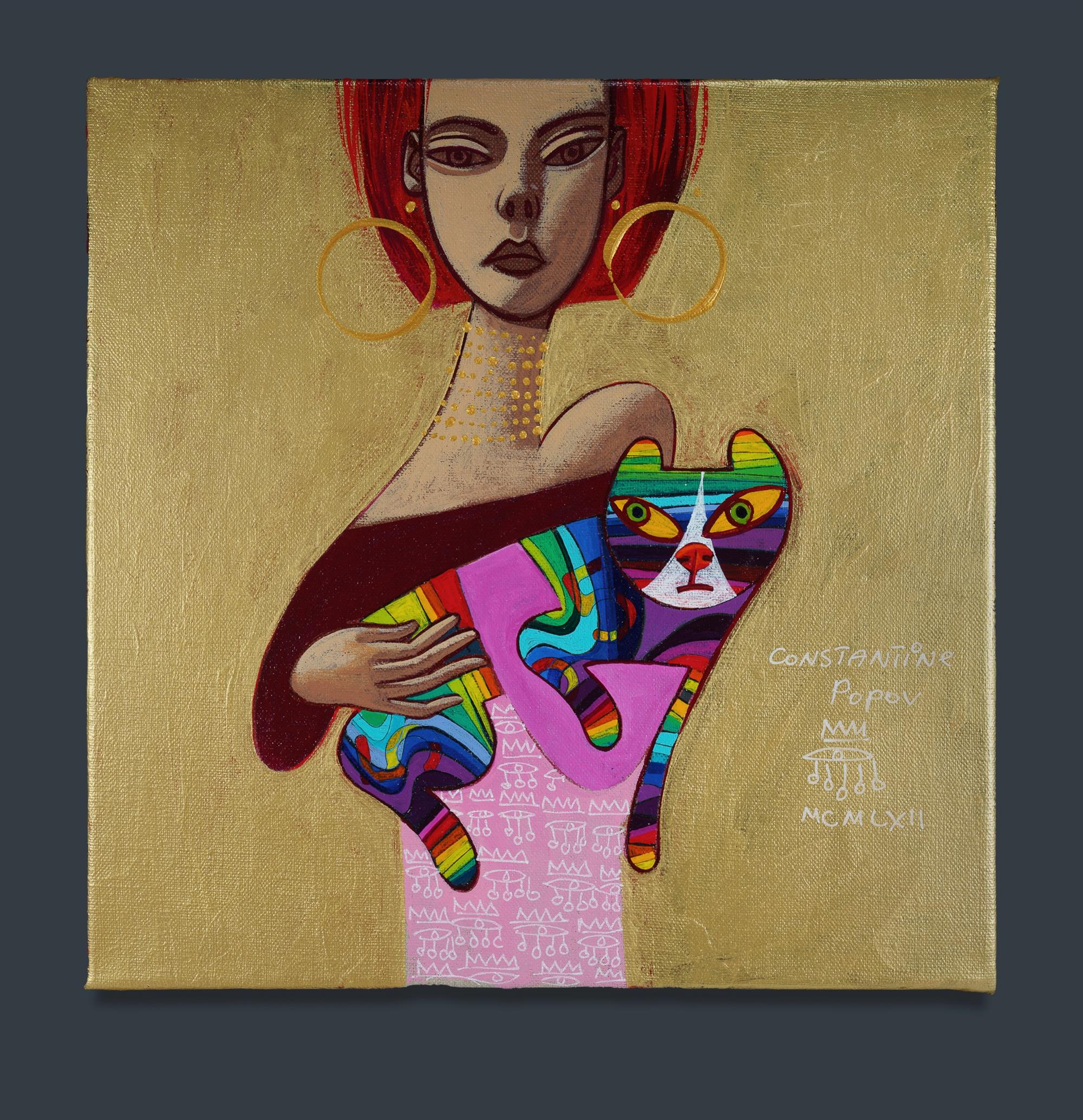 POPOV, Constantine (Swiss/Australian b.1962) Multi-coloured Cat Acrylic on Canvas 30x30cmEstimate $300-500