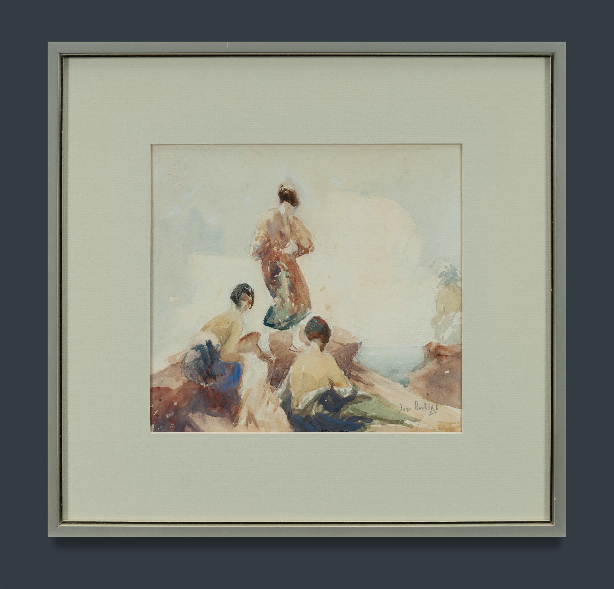 BANKS, John D (1883-1945) Four Women Overlooking the Coast, 1926. W/Clr 22.5x24.5cm