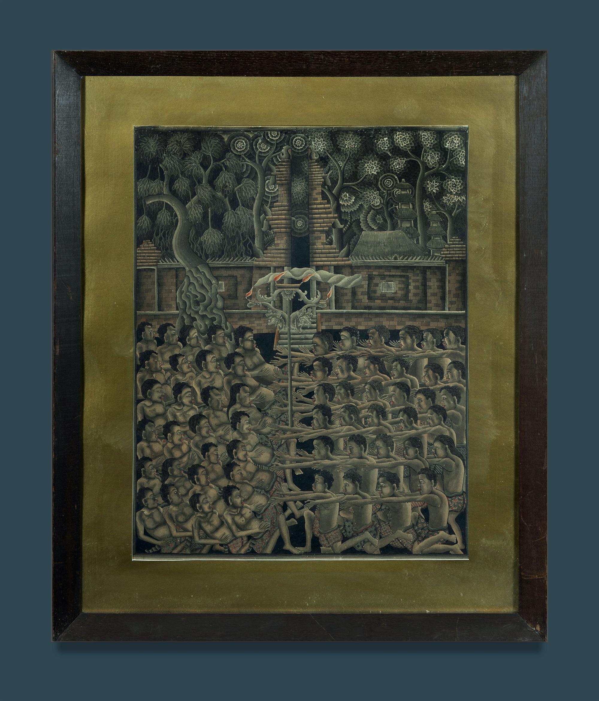 Indonesian School Figures Outside a Balinese Temple No signature apparent. Ink & Colour on Paper 64x49cmEstimate $100-300