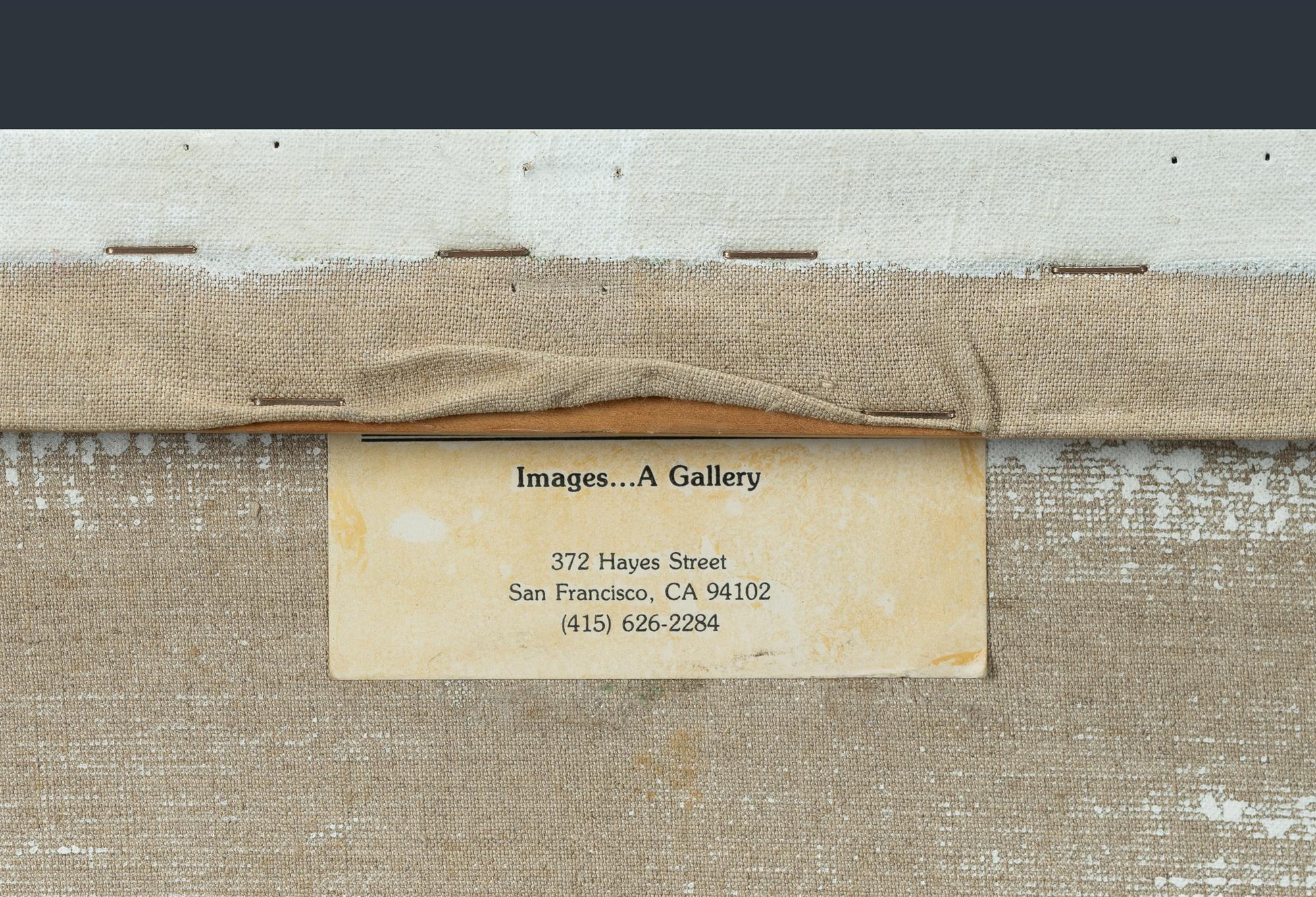 American School Mask and Sign Unsigned. Label verso for Images ... A Gallery, San Francisco. Oil on Belgian Linen 49x100cm PROVENANCE: Ken Hinds Cultural Heritage Collection.Estimate $80-150