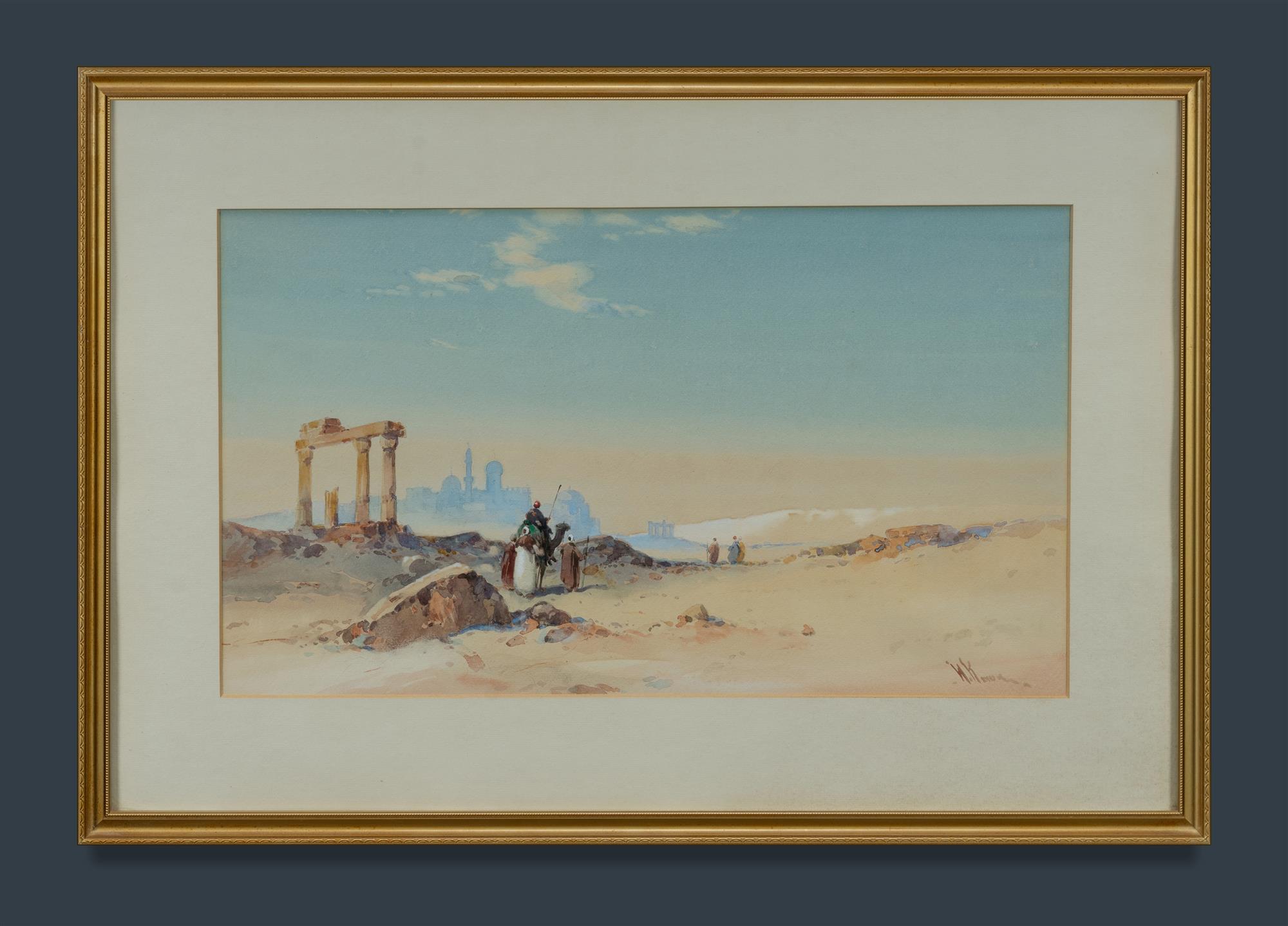 KNOX, William (British 1862-1925) Arabian Scene with Ruins and Cameleer W/Clr 28.5x48.5cmEstimate $80-150