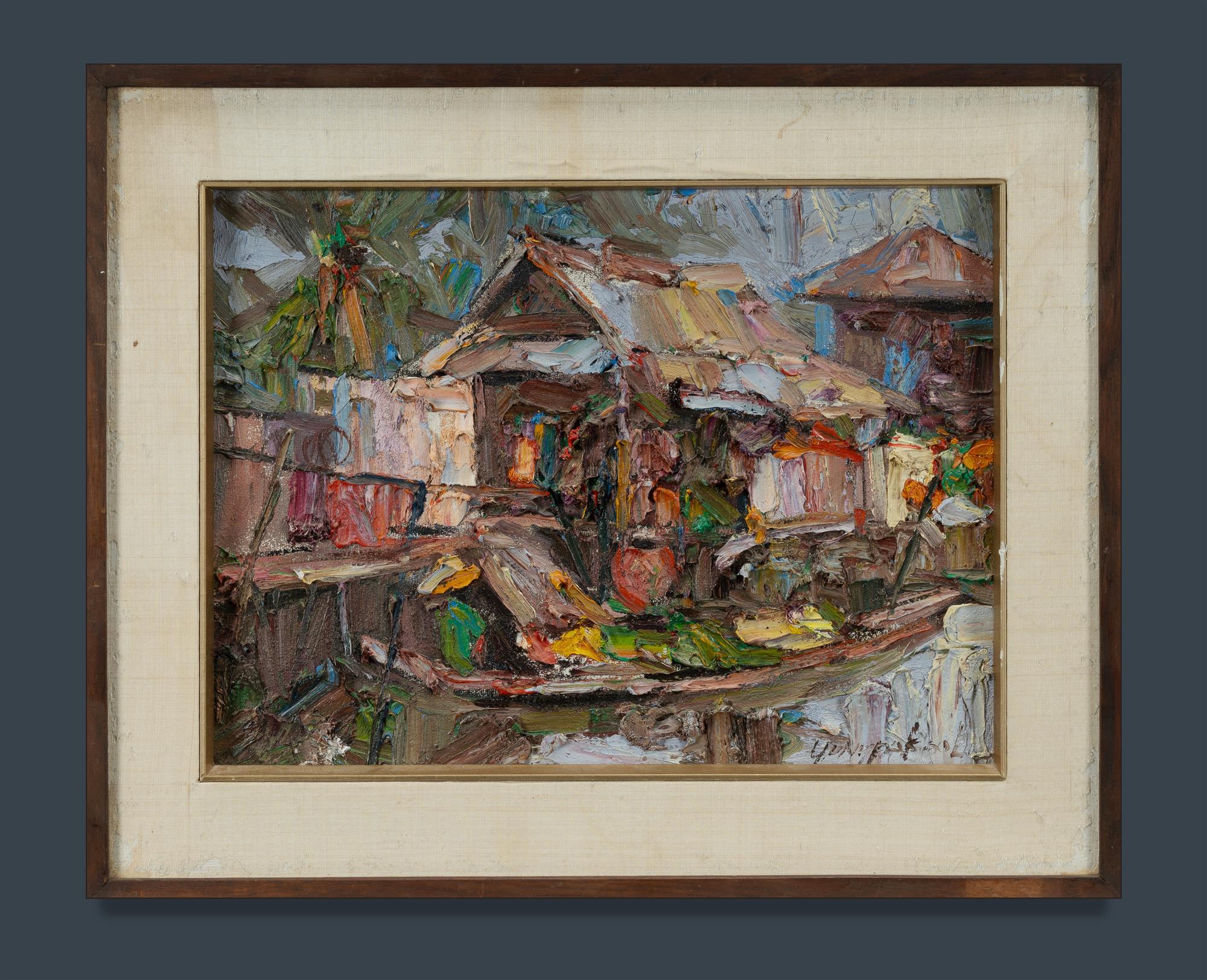 South-east Asian School River Village Signed possibly 'Yunypat__' Oil on Canvas 30x40cmEstimate $80-150
