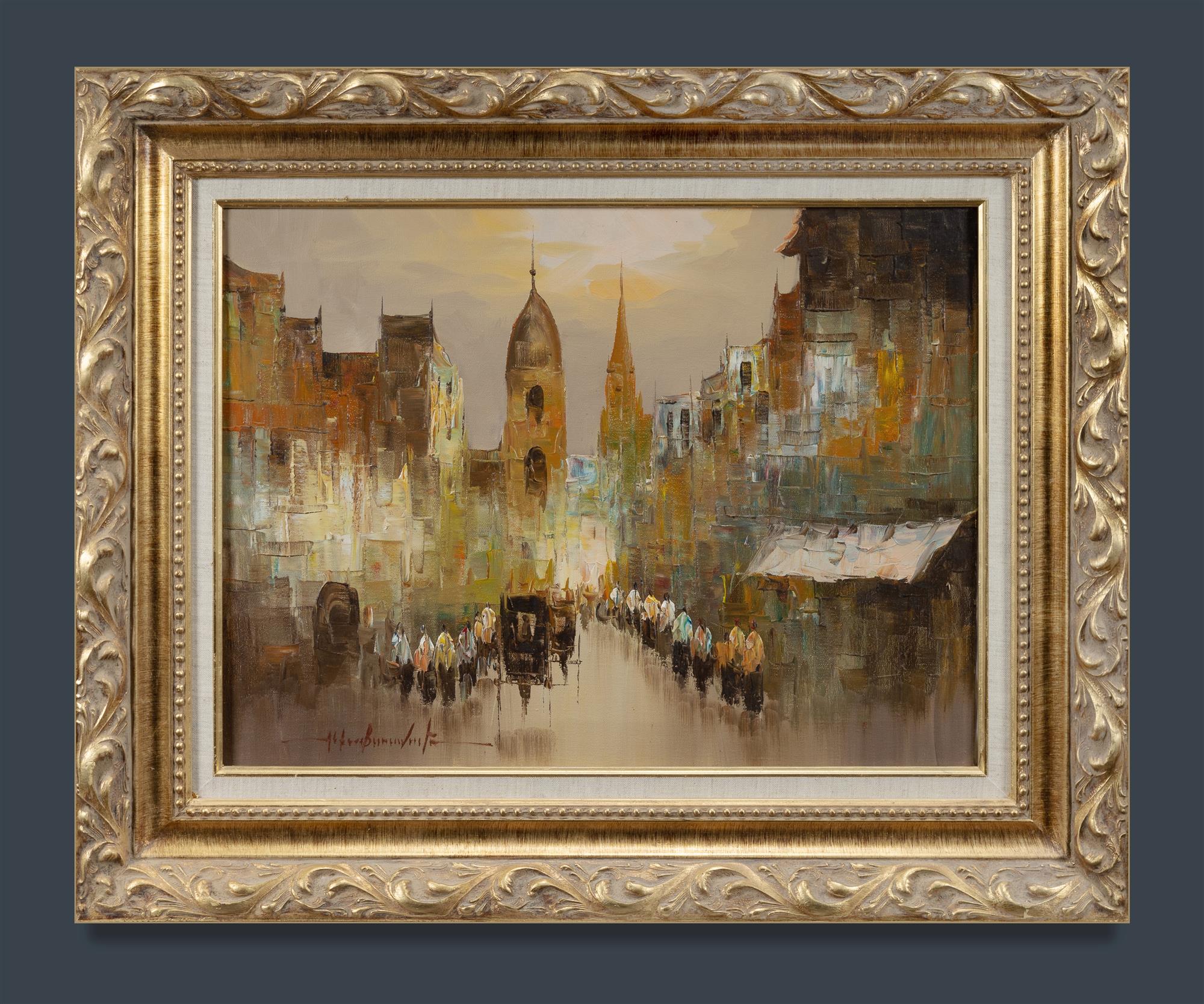 BUENAVENTURA, Alfredo (Philippines 1942-1982) Busy Street, Philippines. Oil on Canvas 44.5x60cmEstimate $200-400