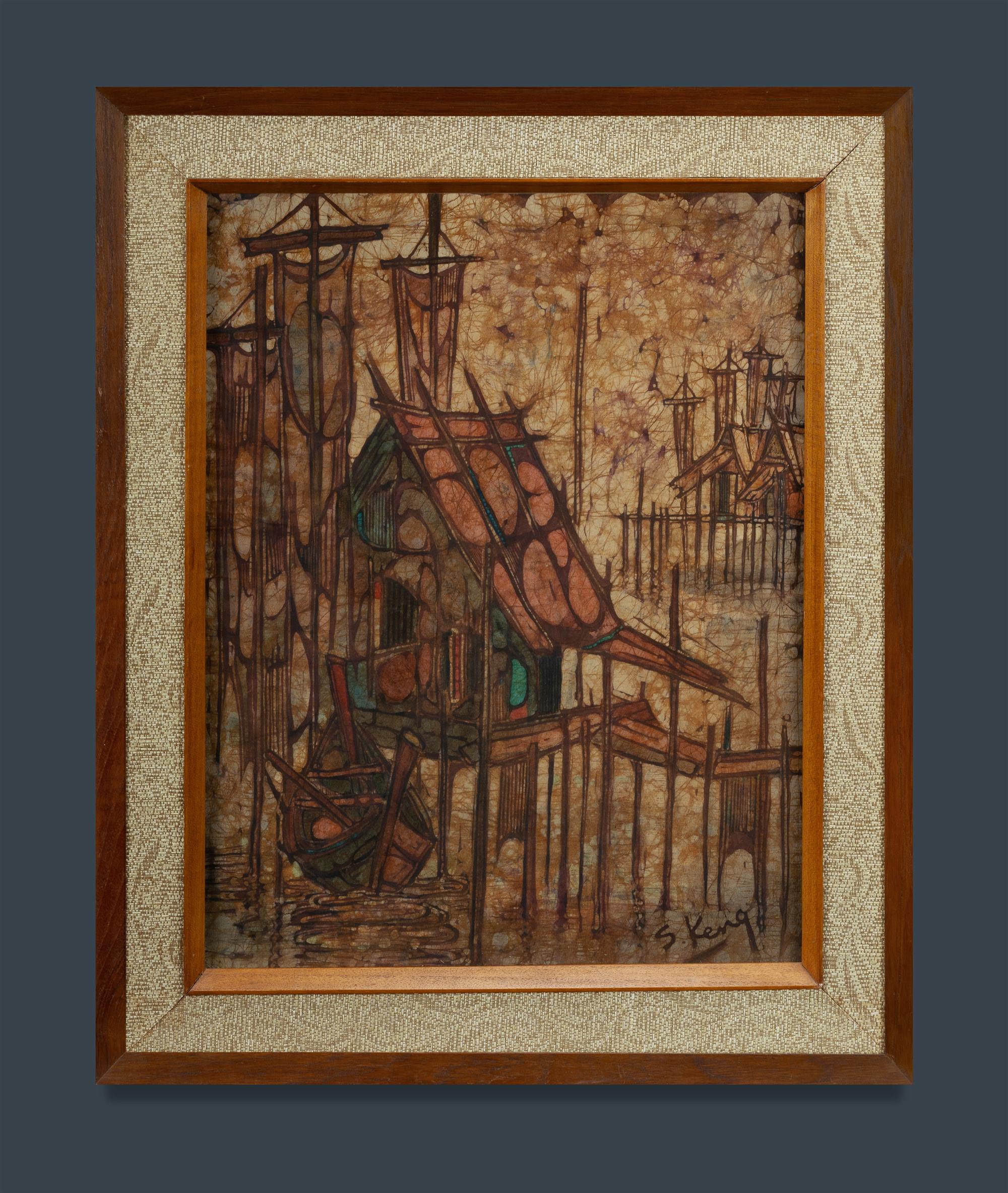 KENG, Chuah Seow (Malaysian b.1945) River House Signed 'S Keng' lower right. Batik 57x44cmEstimate $250-450