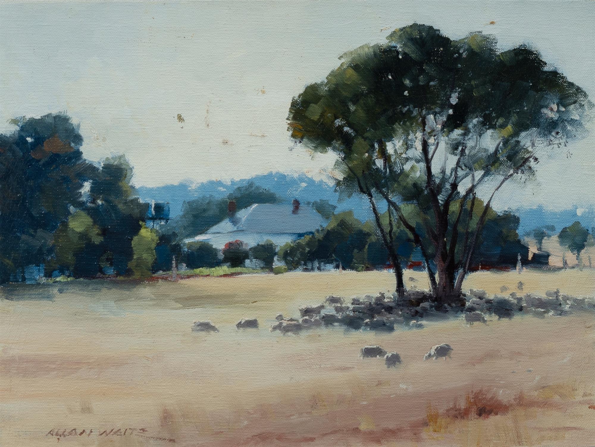 WAITE, Allan (1924-2010) (2) 'Blue Morn, Cootamundra' and 'Rocks with Lichens, Kangaroo Valley' Oil on Canvas on Board (2) 30x40cm (each)Estimate $80-150