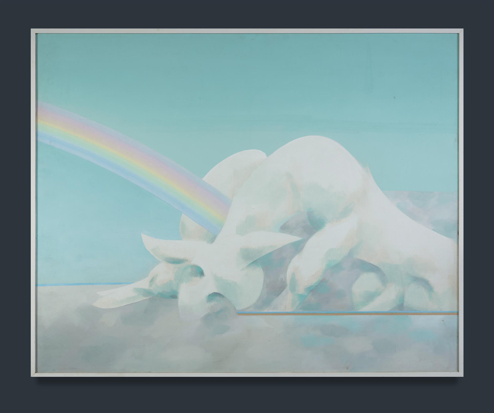 SHAW, Roderick Malcolm (1915-1992) 'Snow Bull,' 1973. (Snowy Mountain Series). Unsigned. Acrylic on Canvas 122x152cm PROVENANCE: Chrissie Shaw, daughter of the artist. EXHIBITIONS: Woolloomooloo Gallery, Sydney, 1970s. 'Artists as Social Commentators and Activists - Tracing the influence of Rod Shaw 1915-1992', Manly Art Gallery & Museum, 2008. Estimate $500-800