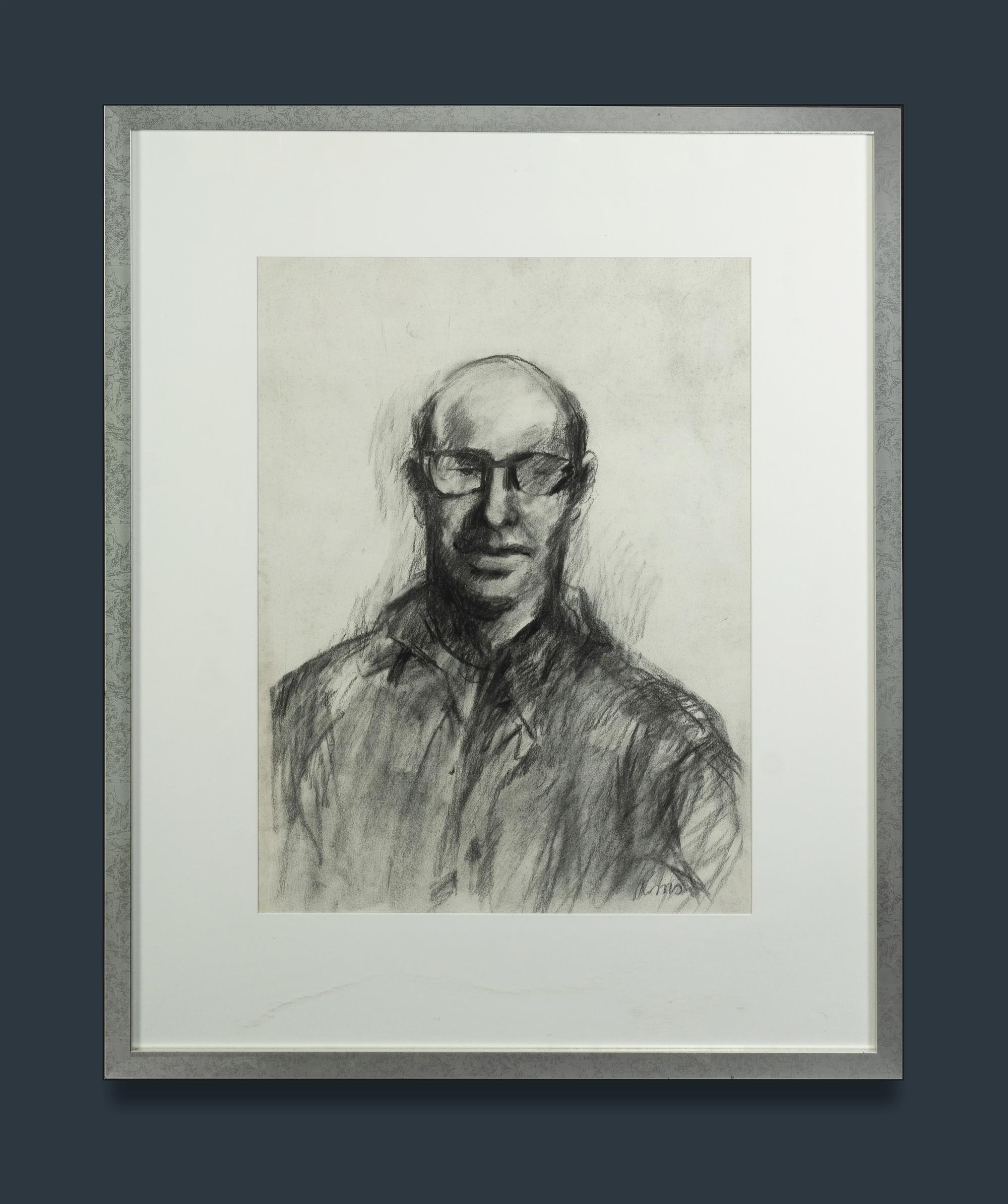 SHAW, Roderick Malcolm (1915-1992) Portrait of Russell Drysdale Initialled lower right. Charcoal 66.5x50.5cm PROVENANCE: Chrissie Shaw, daughter of the artist. EXHIBITIONS: Fundraising exhibition for Gough Whitlam at Sydney Town Hall, 1975.Estimate $200-400