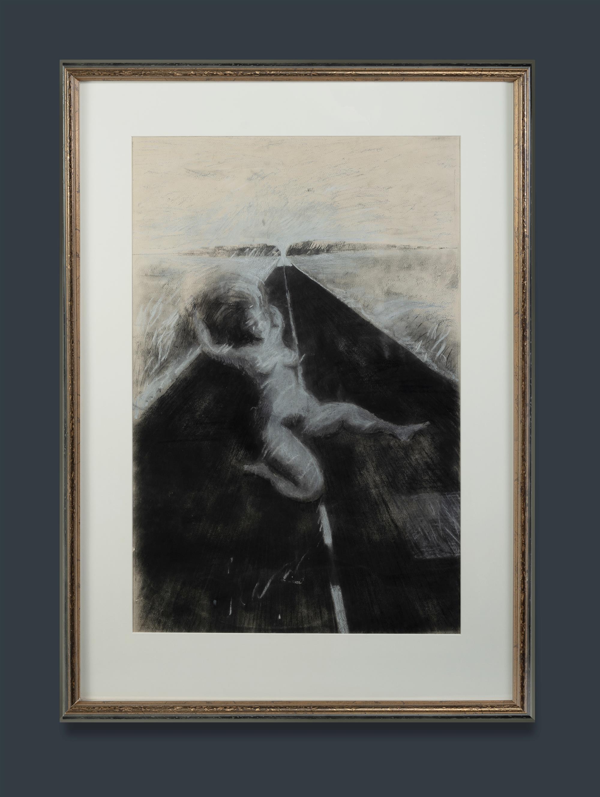 SHAW, Roderick Malcolm (1915-1992) Naked Woman on the Road to Adelaide,' c.1970. No signature apparent. Charcoal 86x55cm PROVENANCE: Chrissie Shaw, daughter of the artist.Estimate $200-400